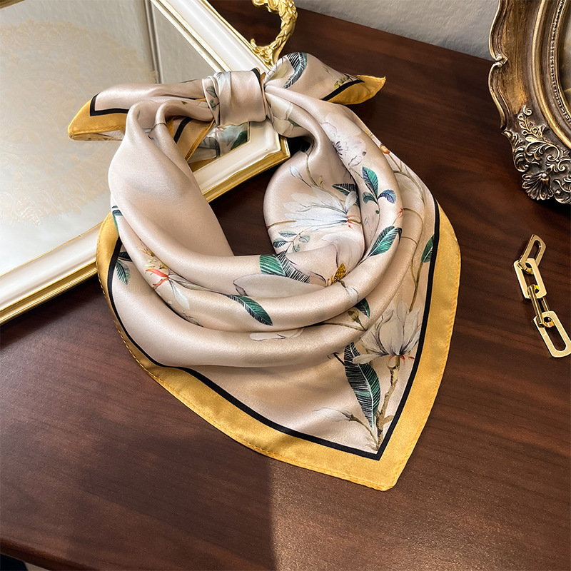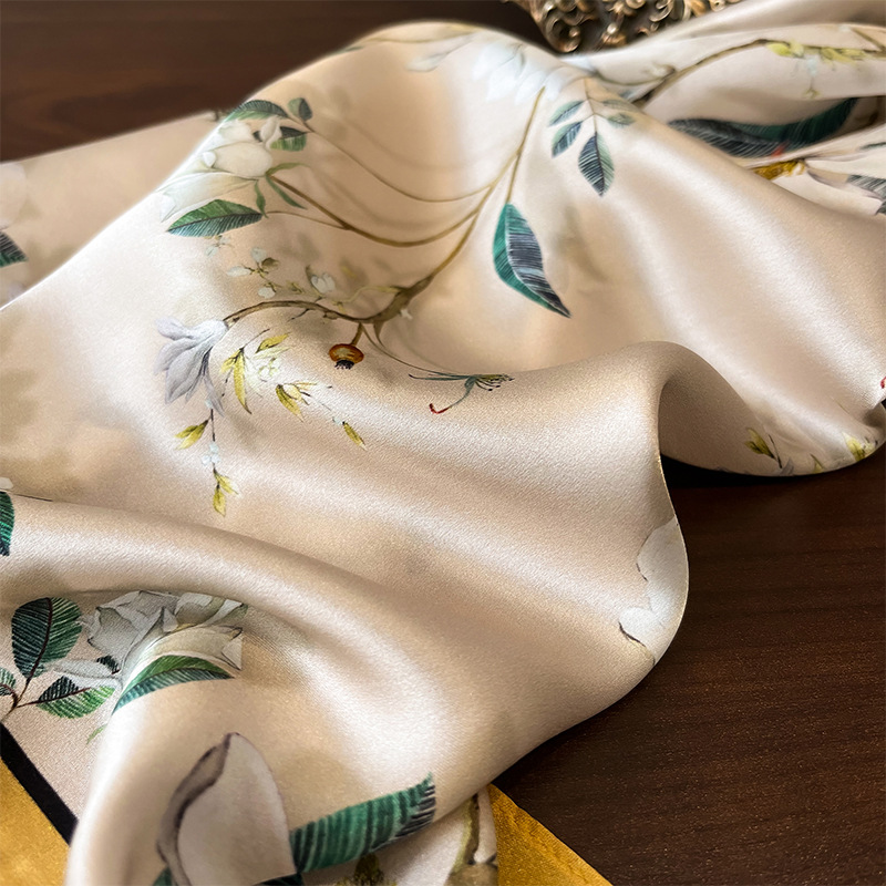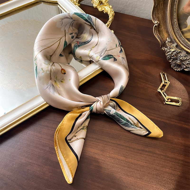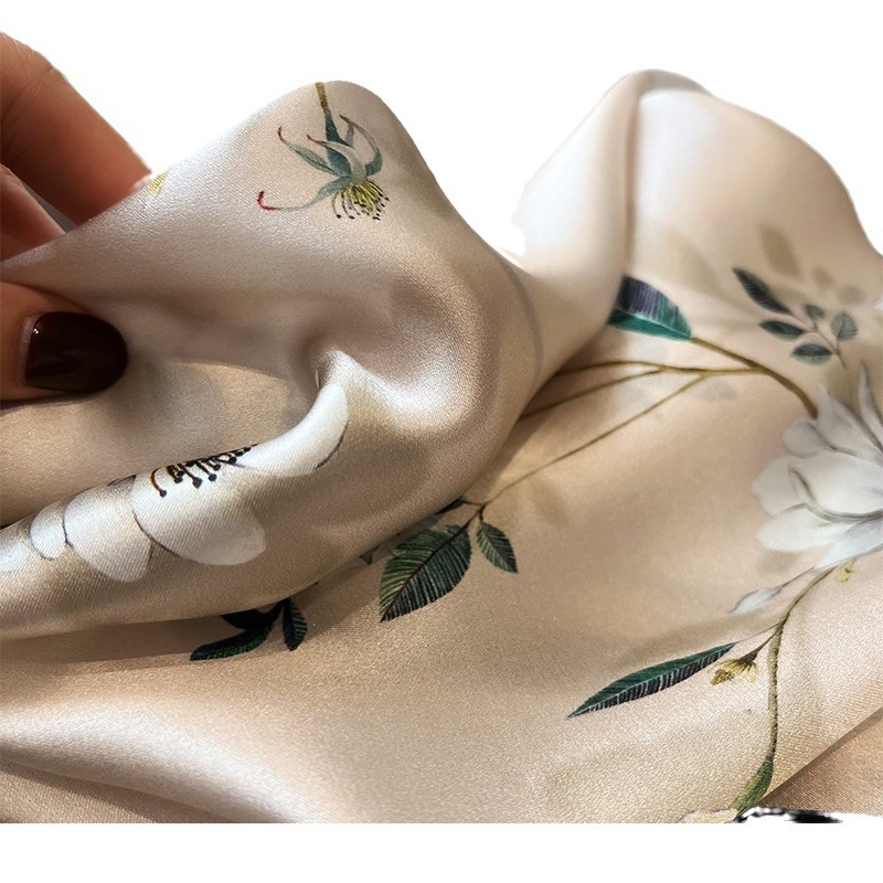 新款真丝丝巾女春夏时尚百搭轻奢53小丝巾100%桑蚕丝素绉缎丝巾