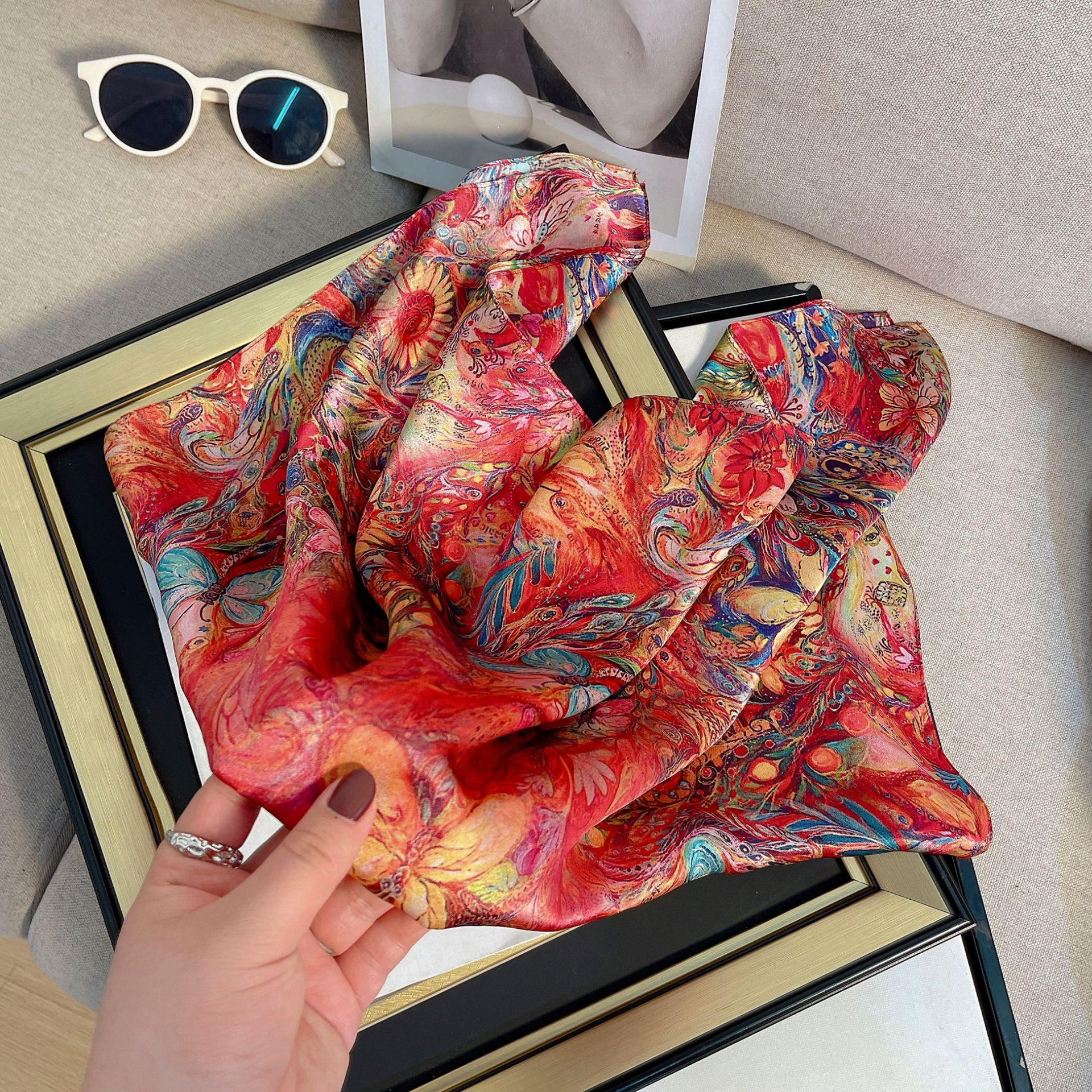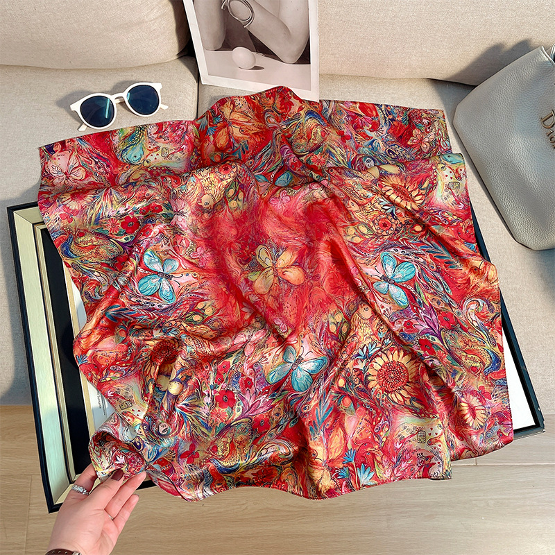 丝巾妈妈礼物春秋洋气时尚高级感红色百搭披肩薄款围巾丝巾