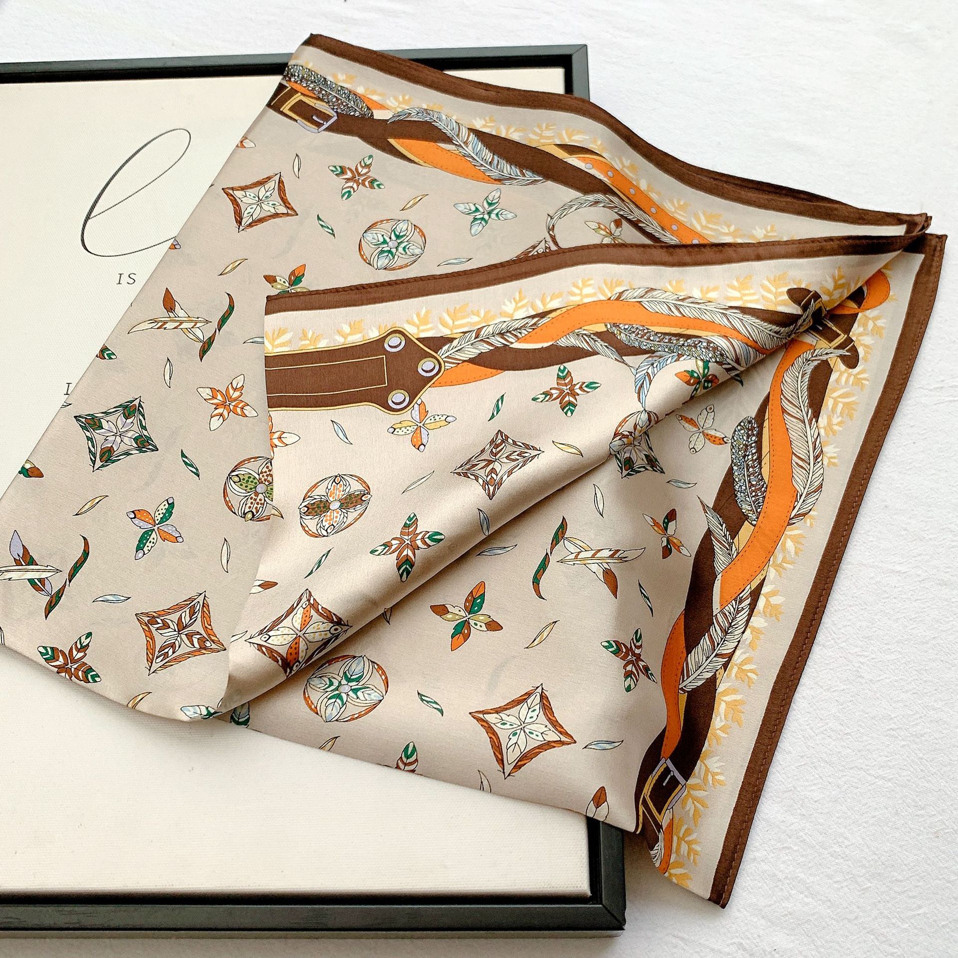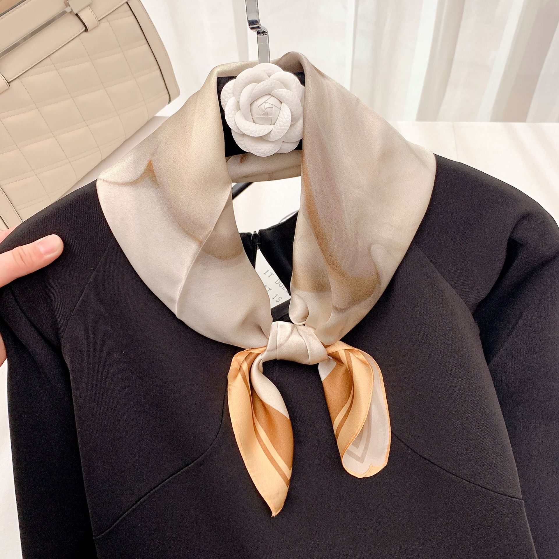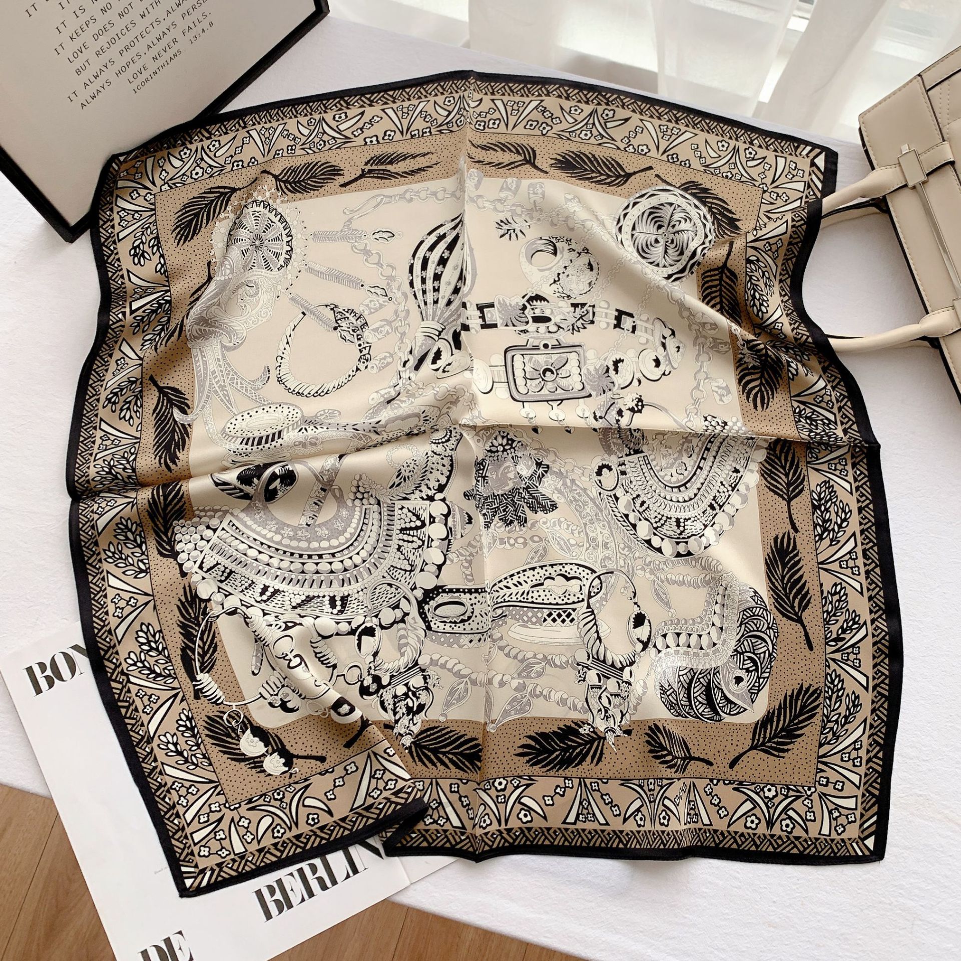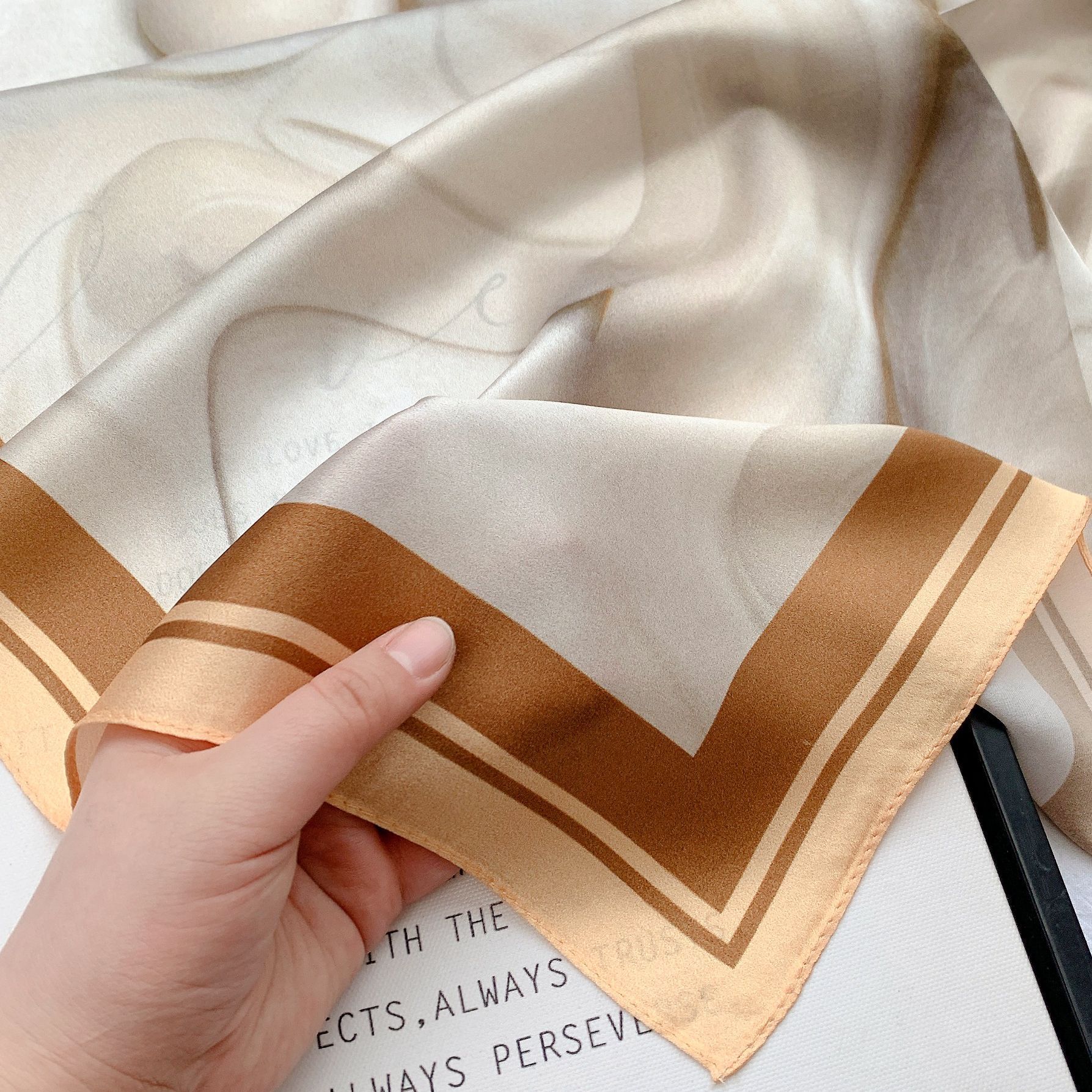 法式复古油画真丝丝巾女秋季新款时尚100%桑蚕丝中方巾护颈领巾女