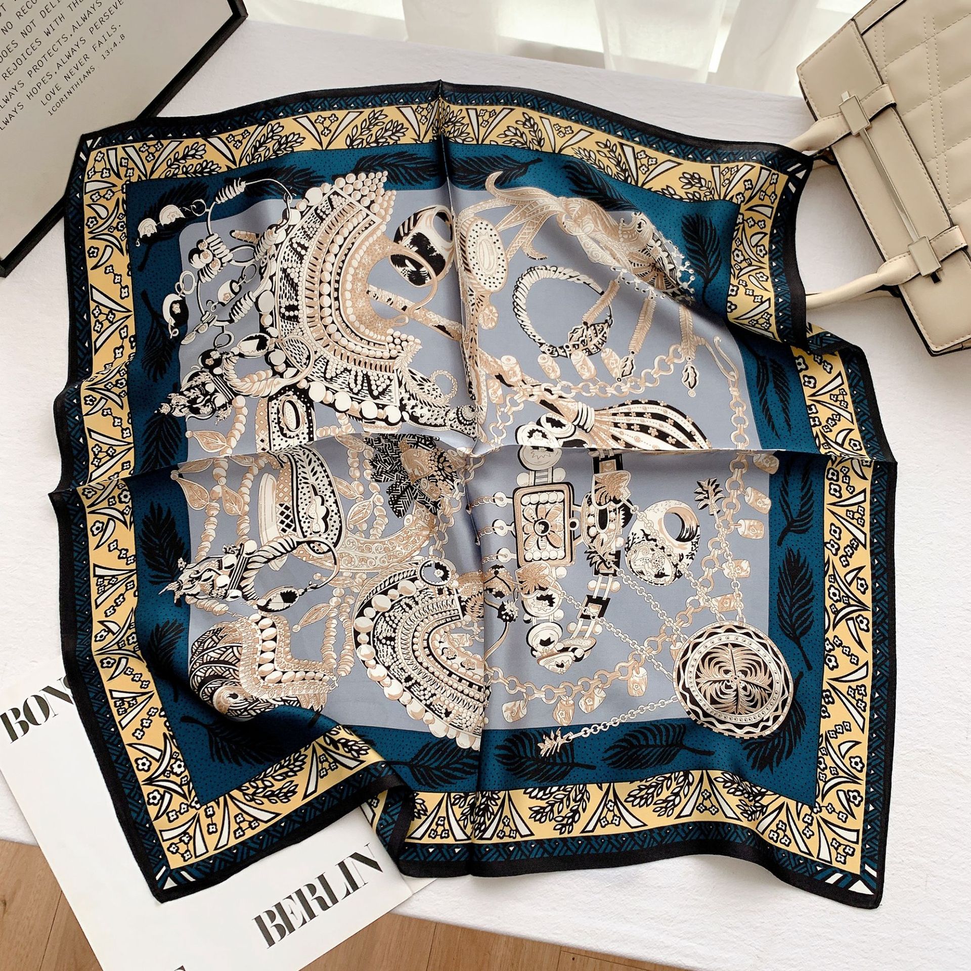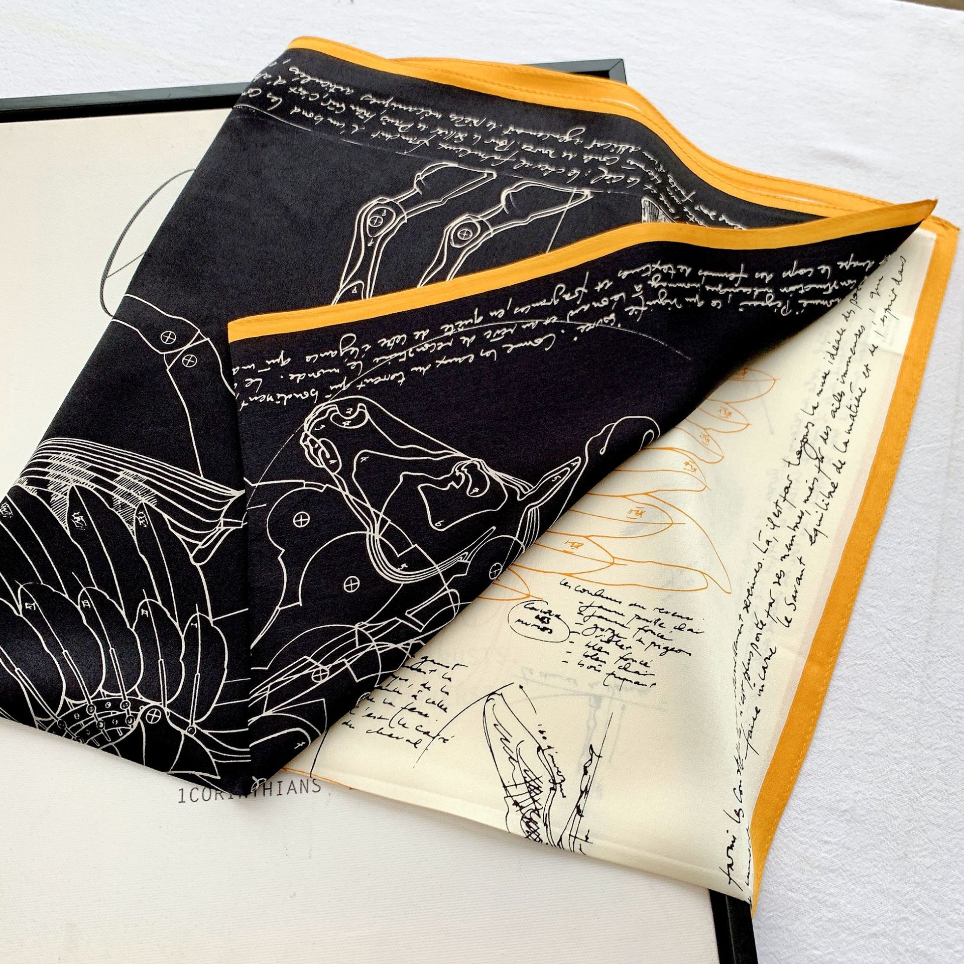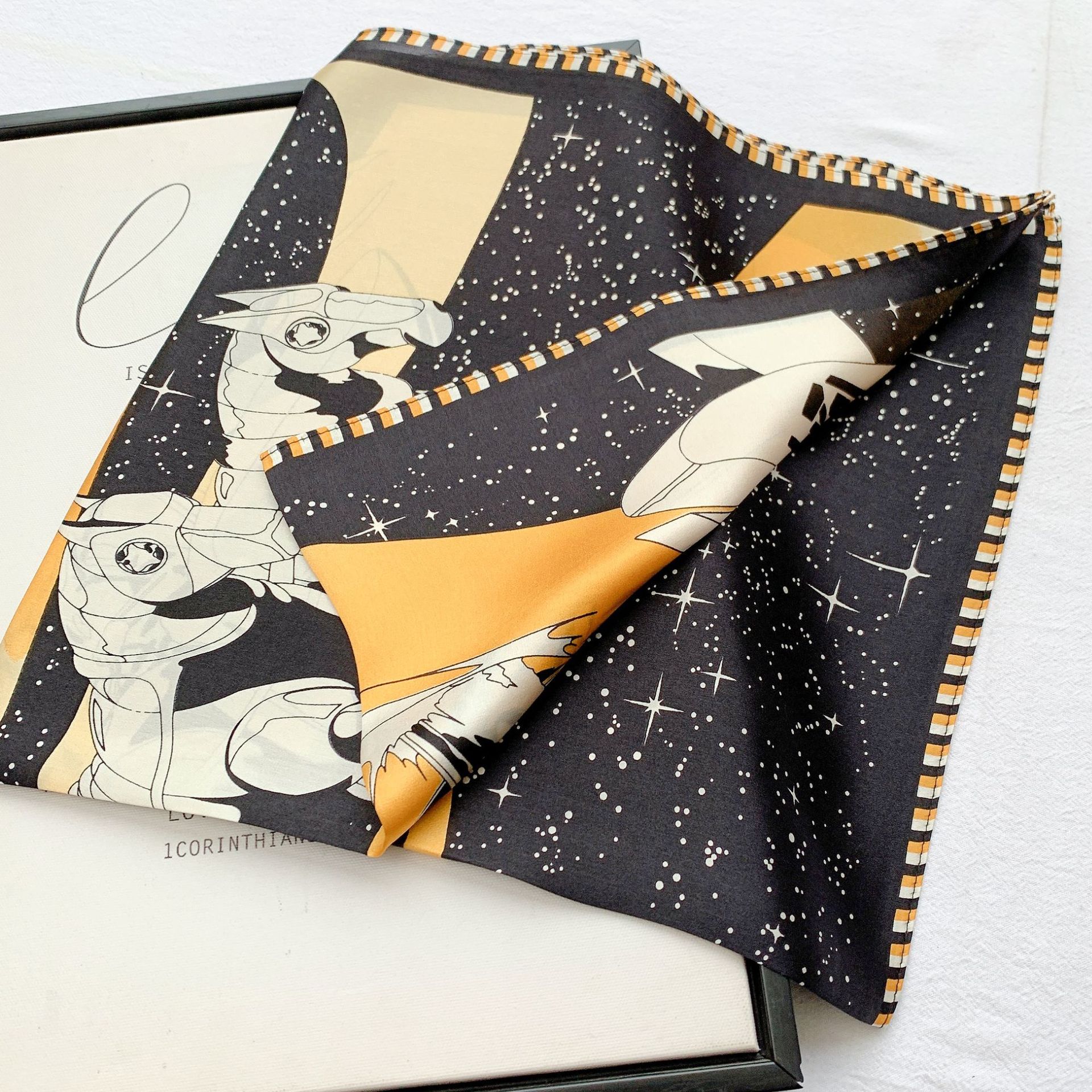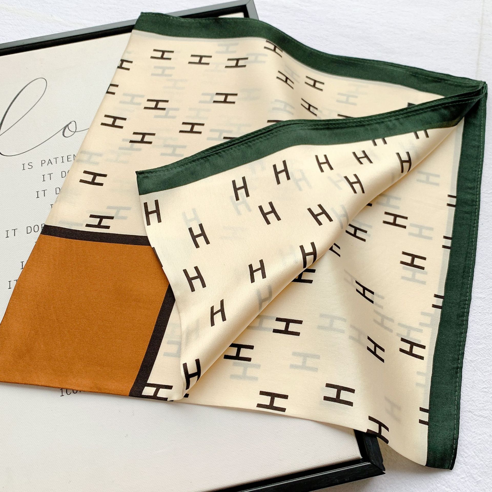 法式复古油画真丝丝巾女秋季新款时尚100%桑蚕丝中方巾护颈领巾女