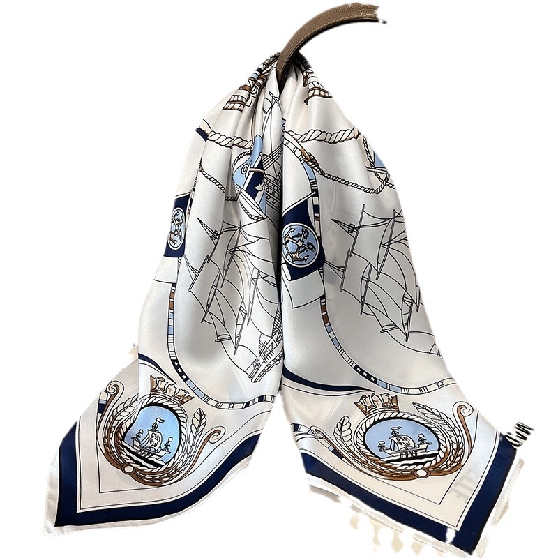 时尚轻奢真丝丝巾女新款春季百搭航海家真丝70方巾100%桑蚕丝丝巾