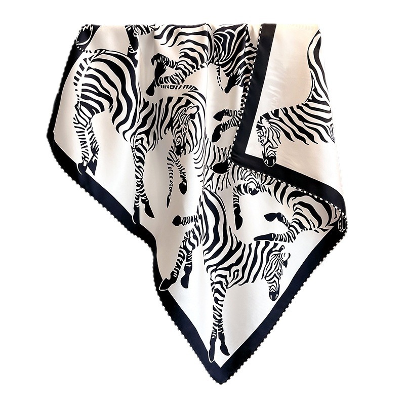 春季设计感斑马真丝丝巾女新款时尚ins风桑蚕丝丝巾轻奢斜纹方巾