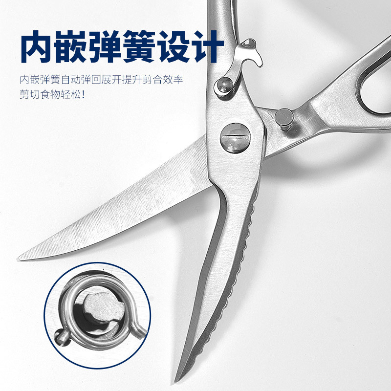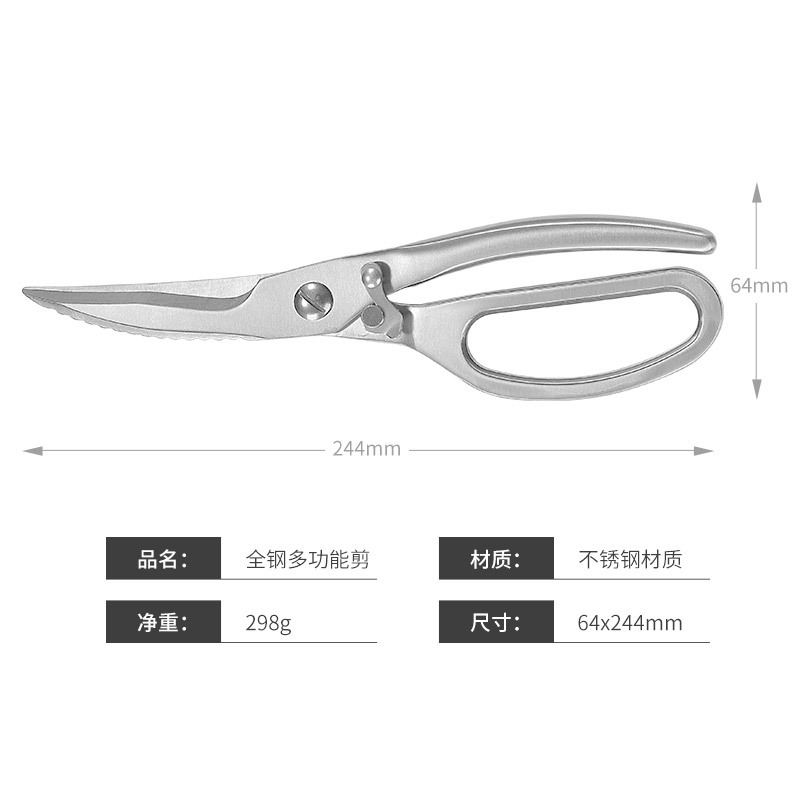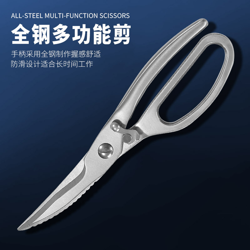 全钢剪刀强力鸡骨剪厨房剪杀鱼剪多用途食物 家用剪刀一体钢剪刀