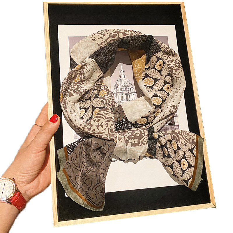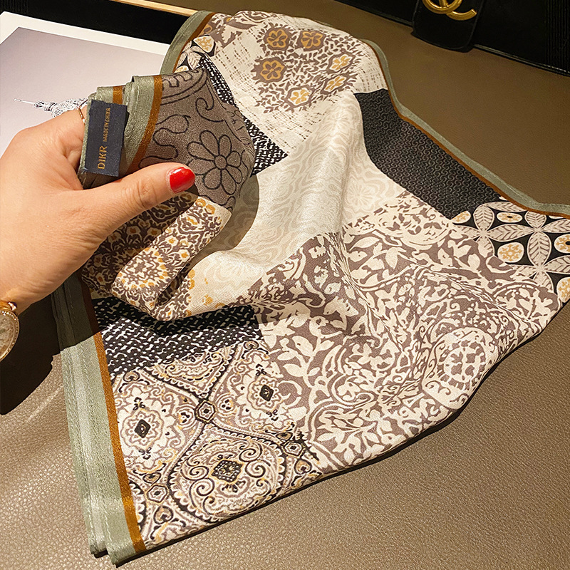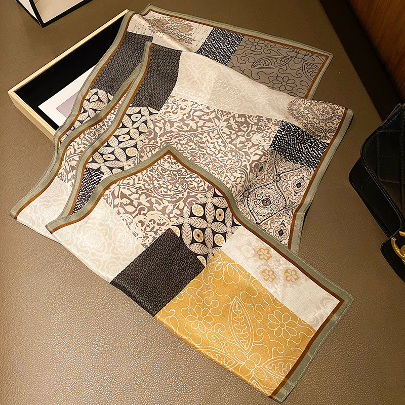 新款拼色腰果花丝巾女春夏丝绸印花薄款围巾12姆米缎面丝巾领巾