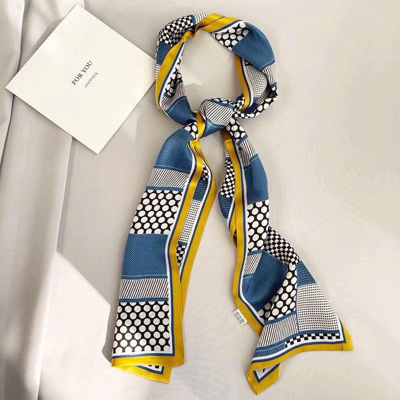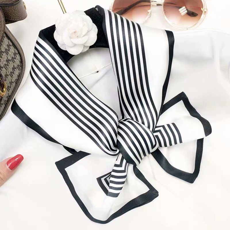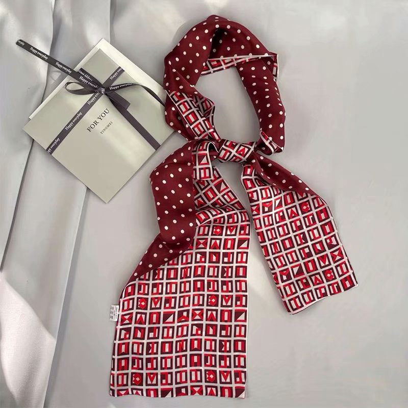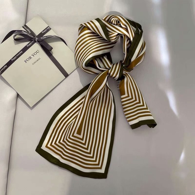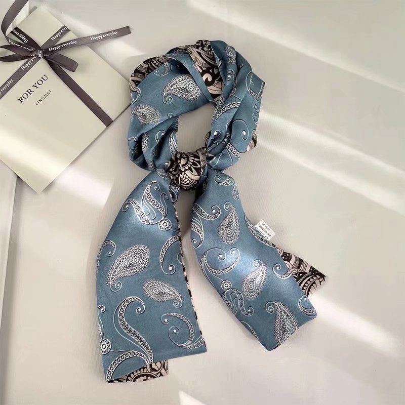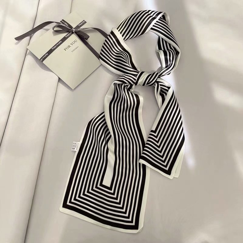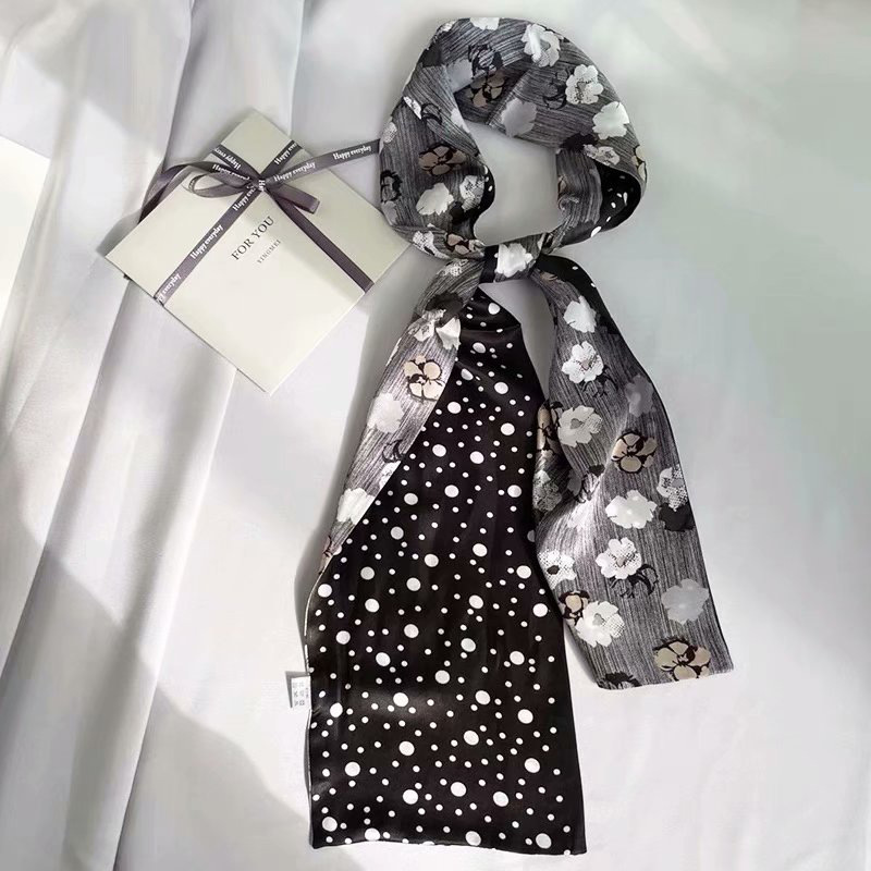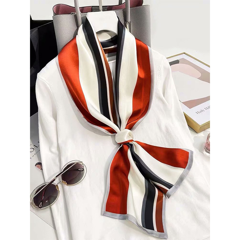 春夏季双层小飘带桑蚕丝丝巾长条时尚小方巾素绉缎百搭真丝丝巾