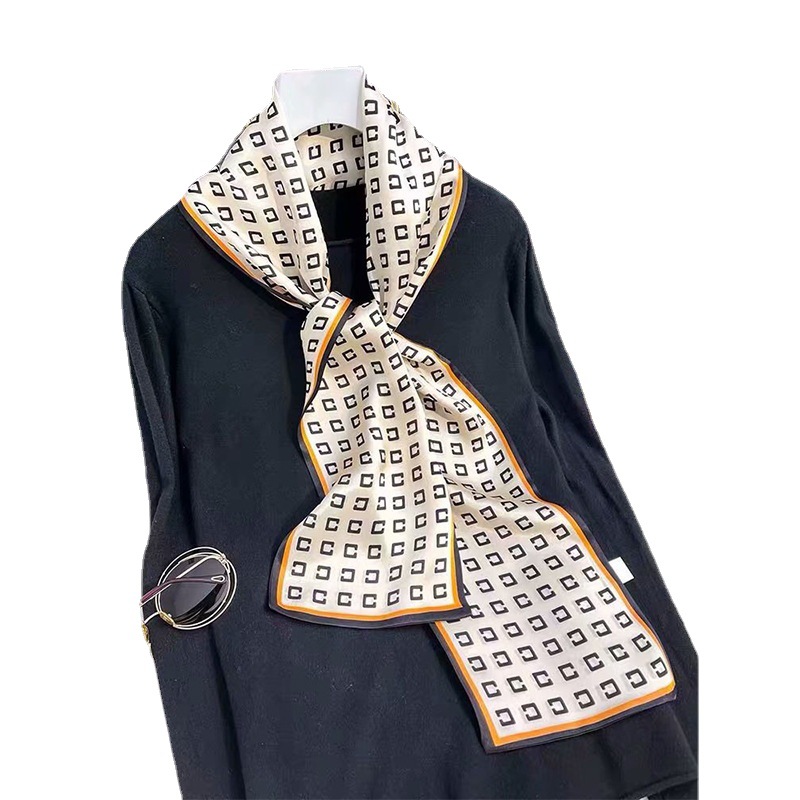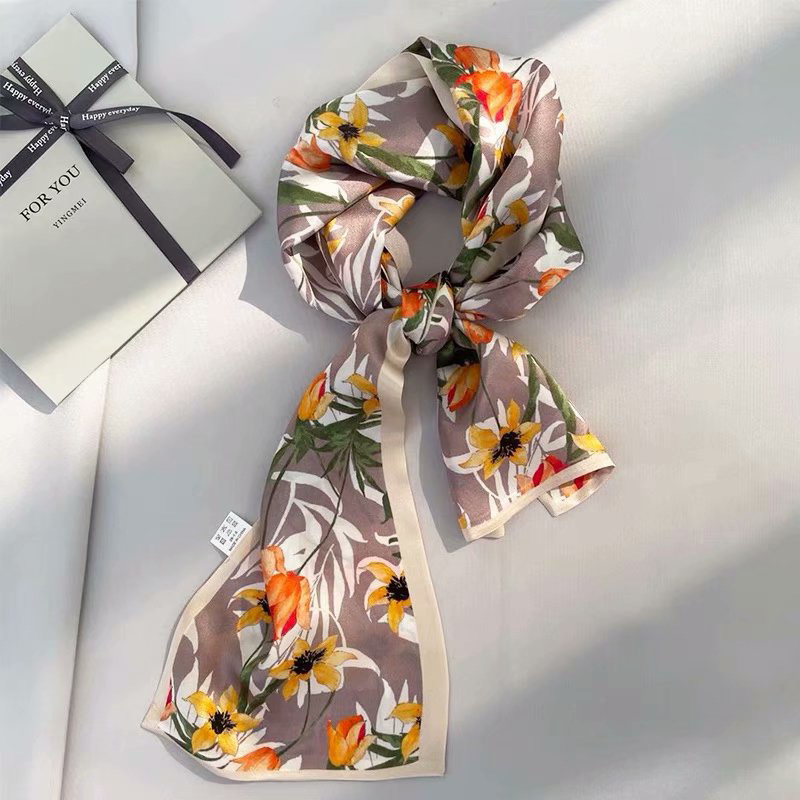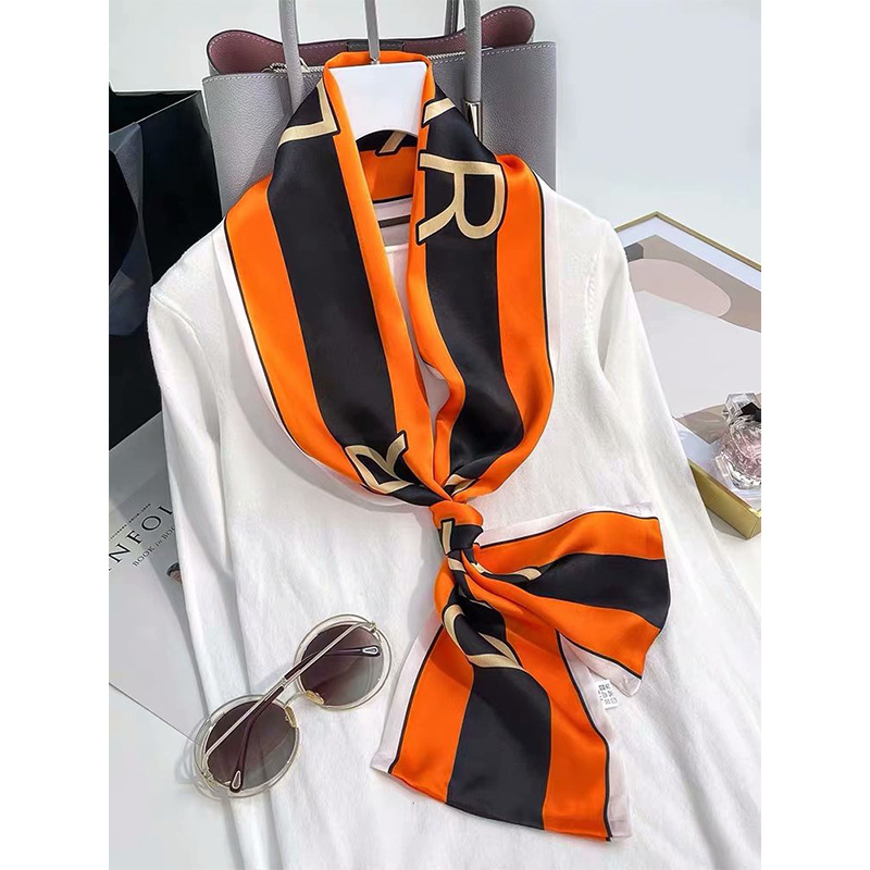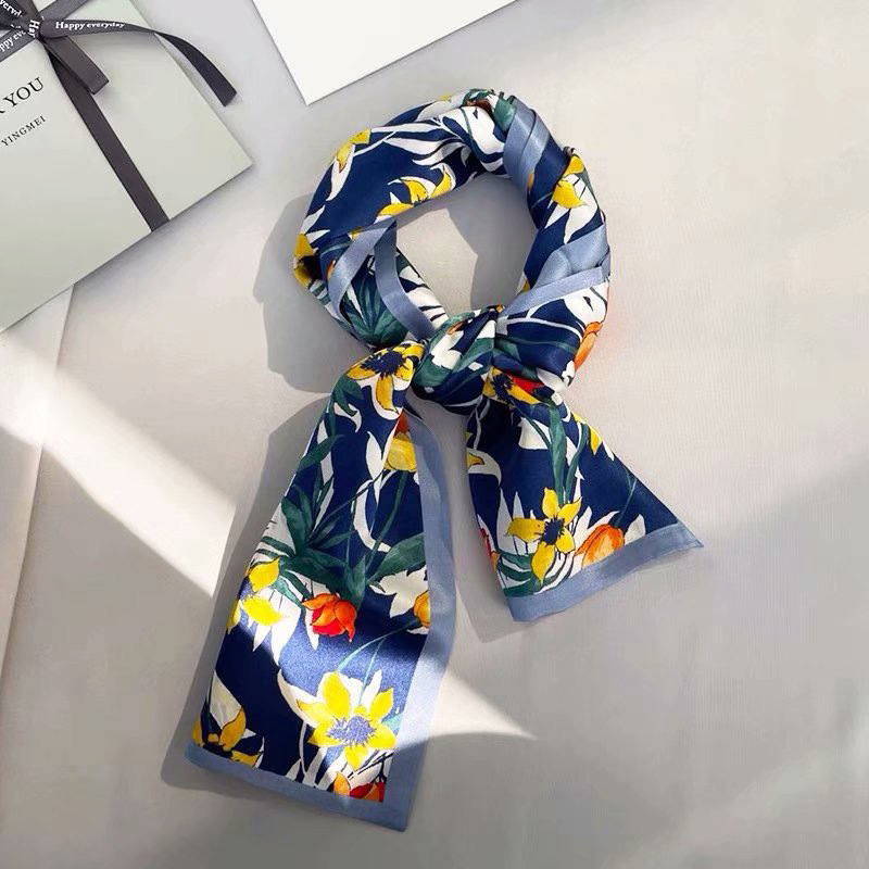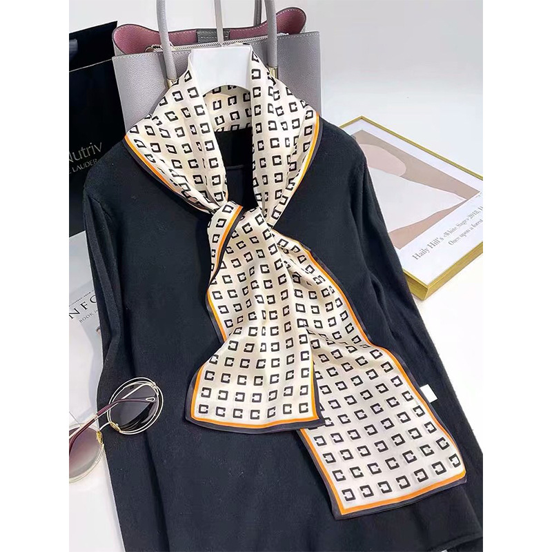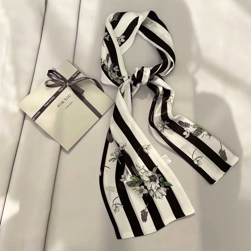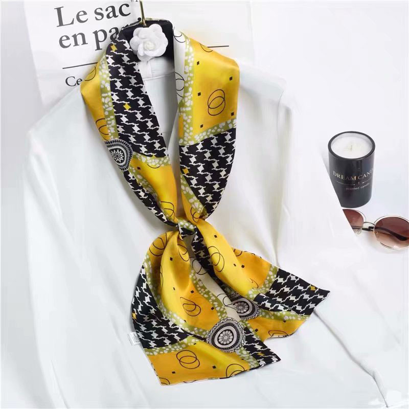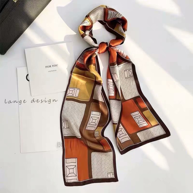 春夏季双层小飘带桑蚕丝丝巾长条时尚小方巾素绉缎百搭真丝丝巾