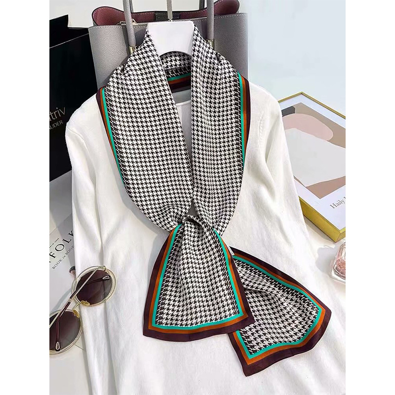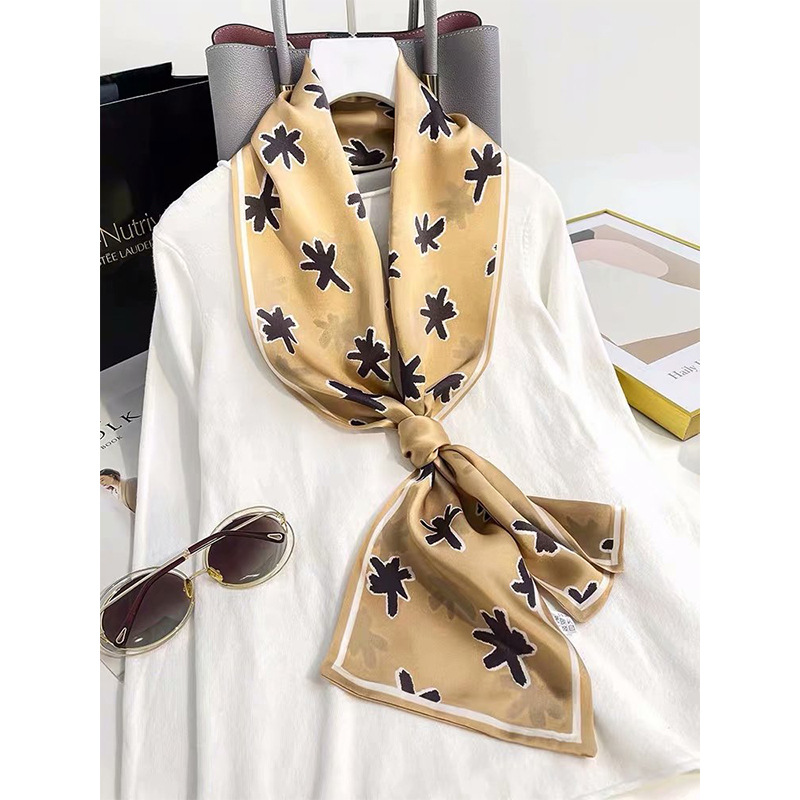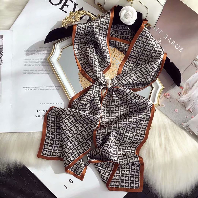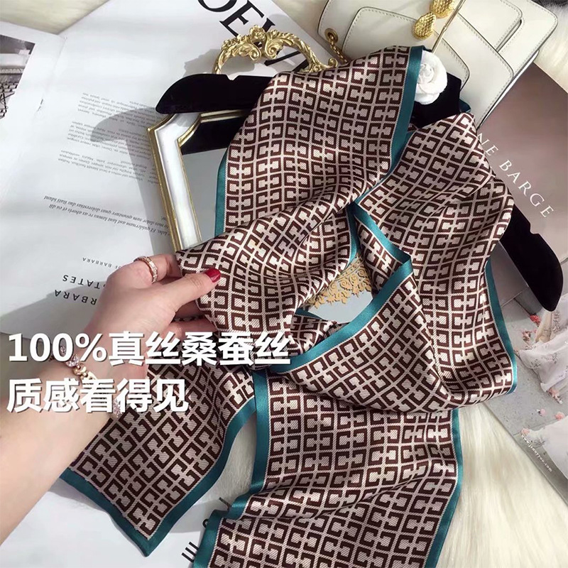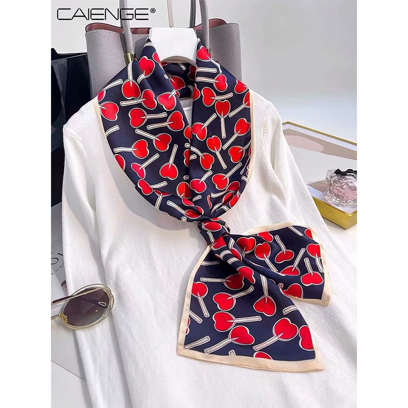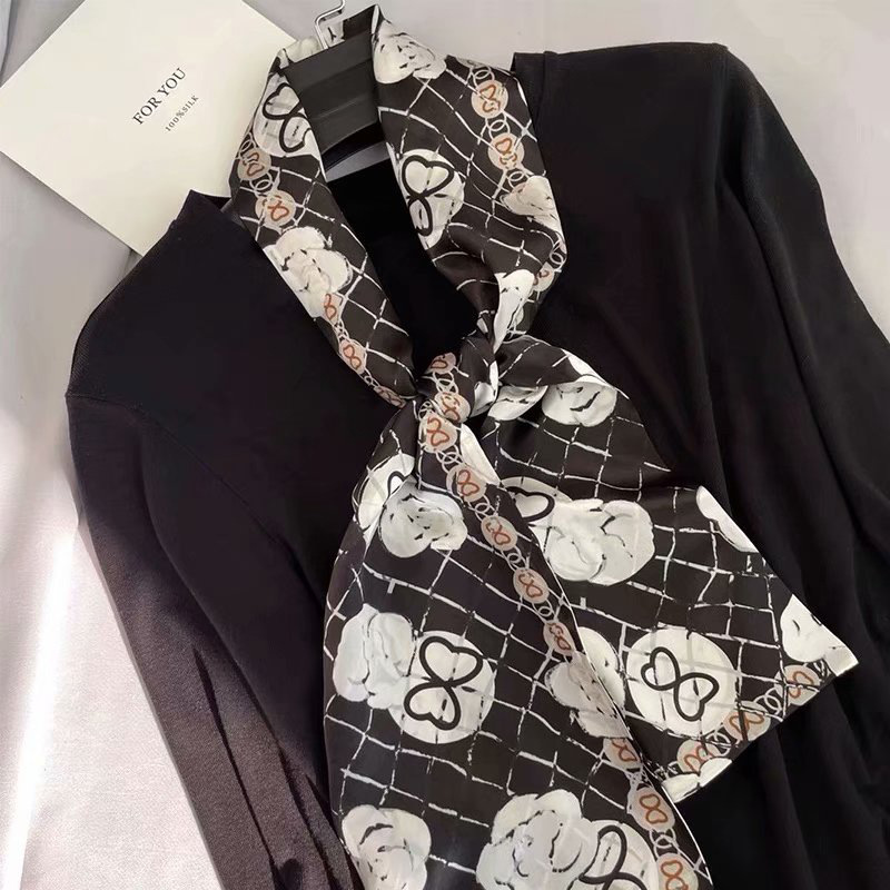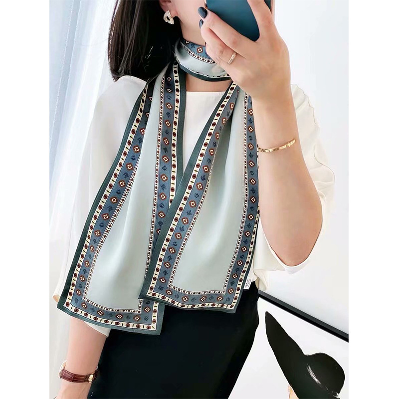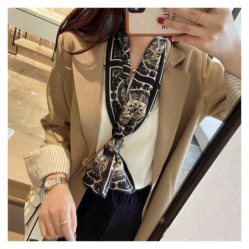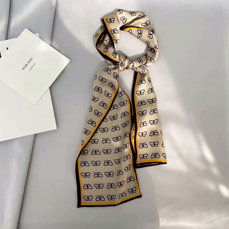 春夏季双层小飘带桑蚕丝丝巾长条时尚小方巾素绉缎百搭真丝丝巾