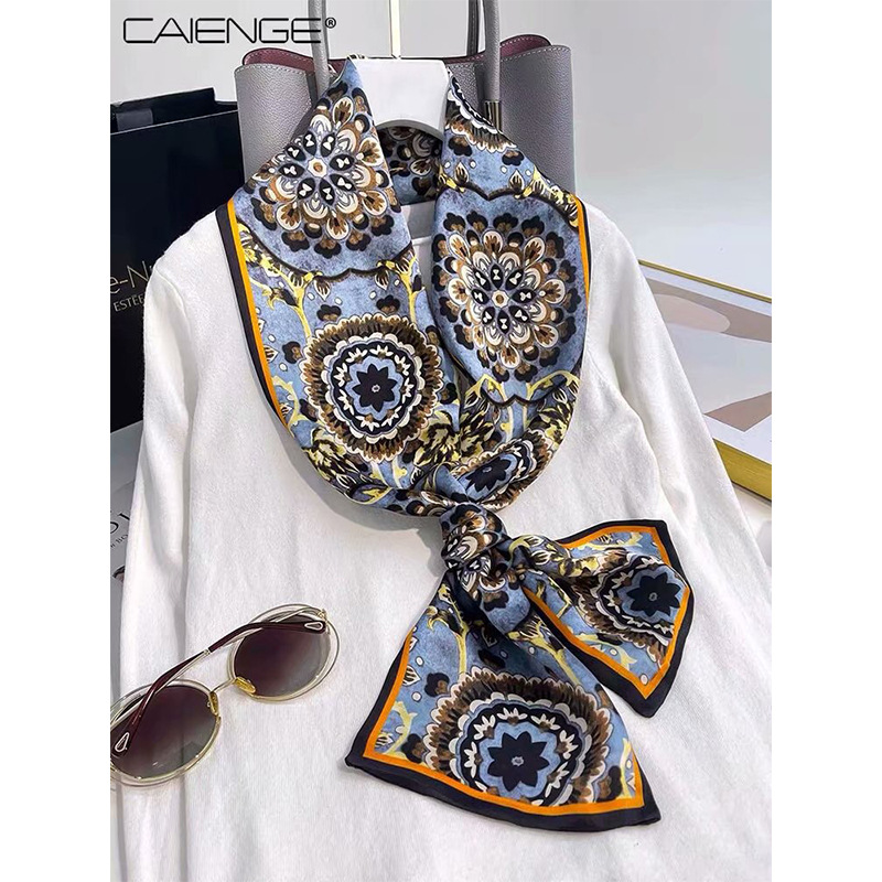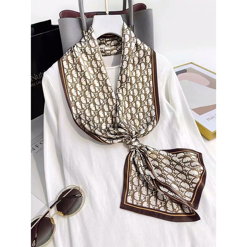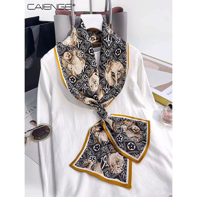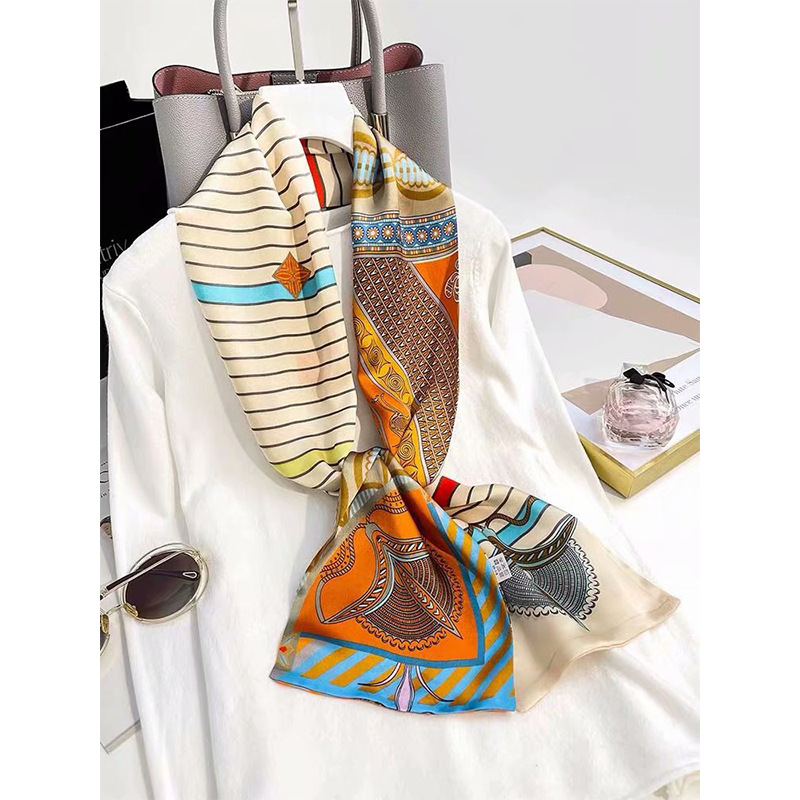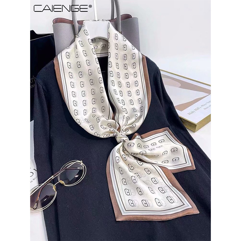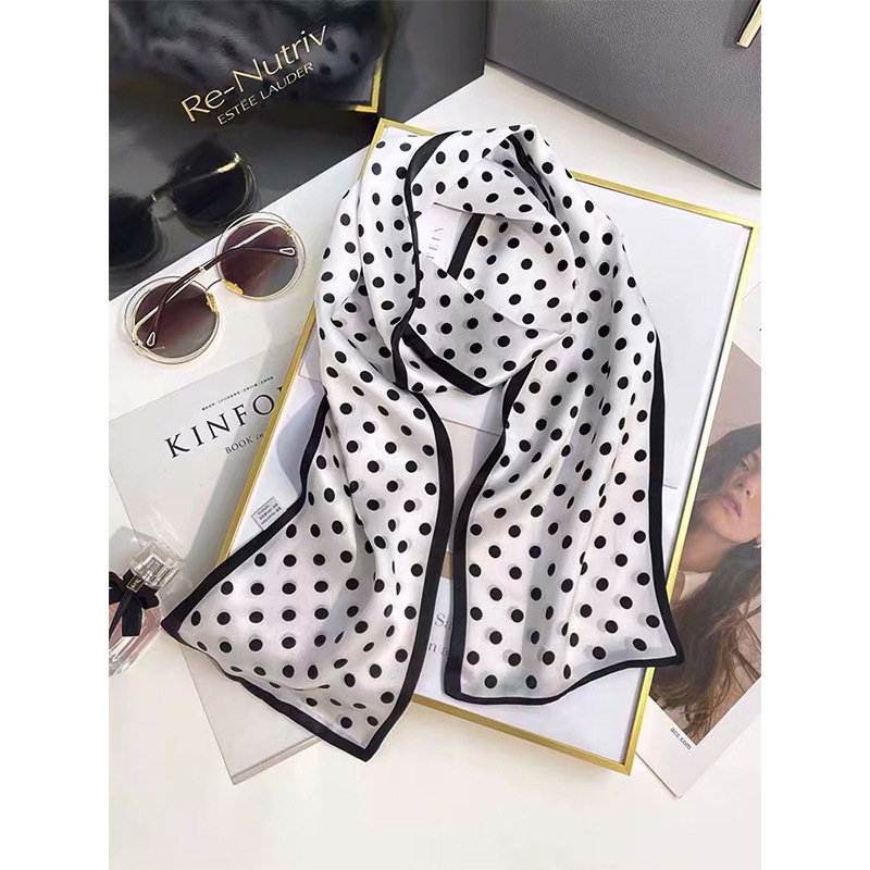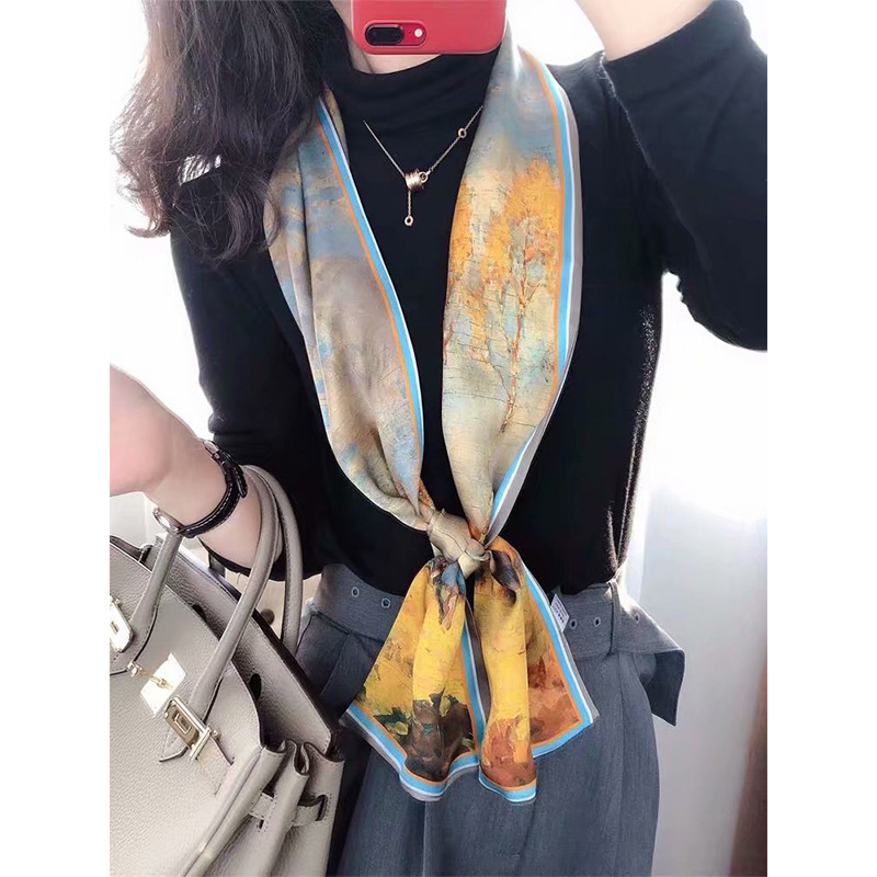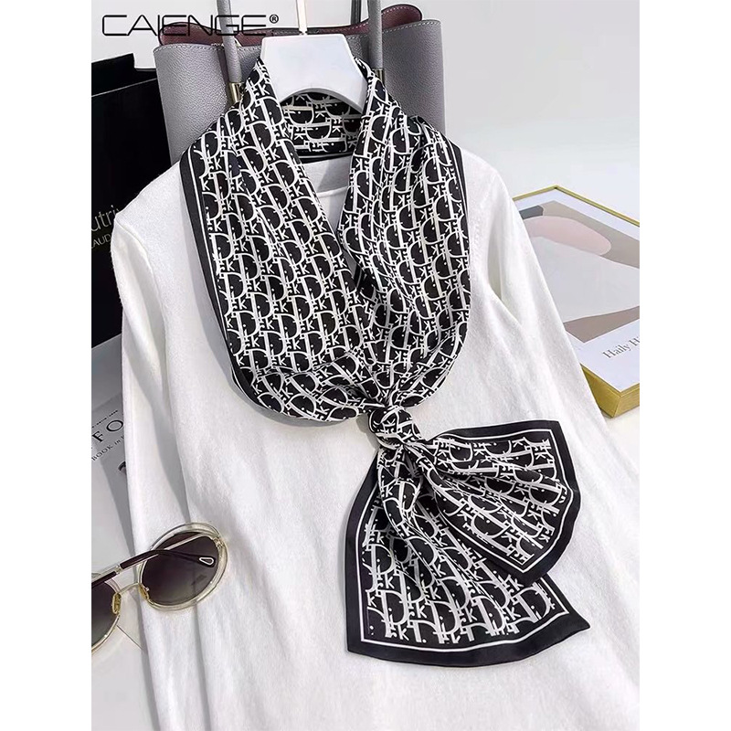 春夏季双层小飘带桑蚕丝丝巾长条时尚小方巾素绉缎百搭真丝丝巾