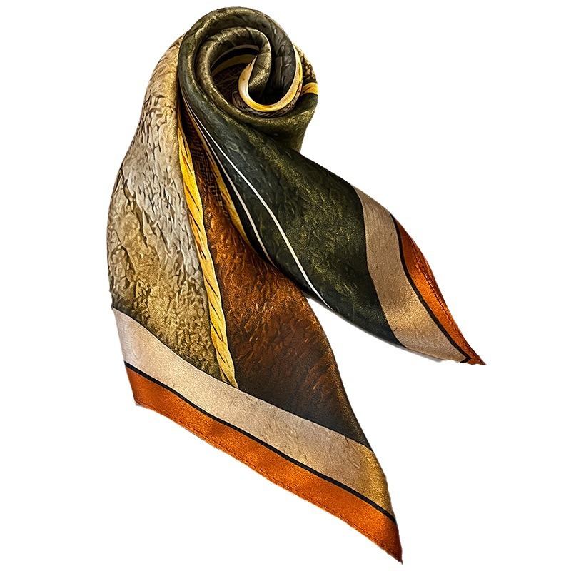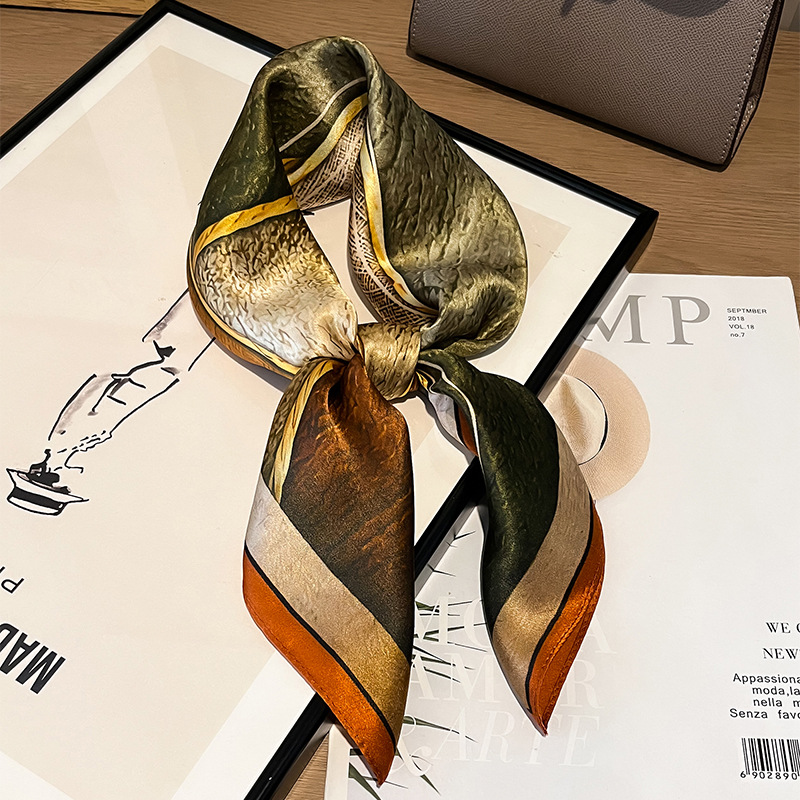 春季真丝丝巾女新款优雅100%桑蚕丝丝巾时尚高级感素绉缎70方巾
