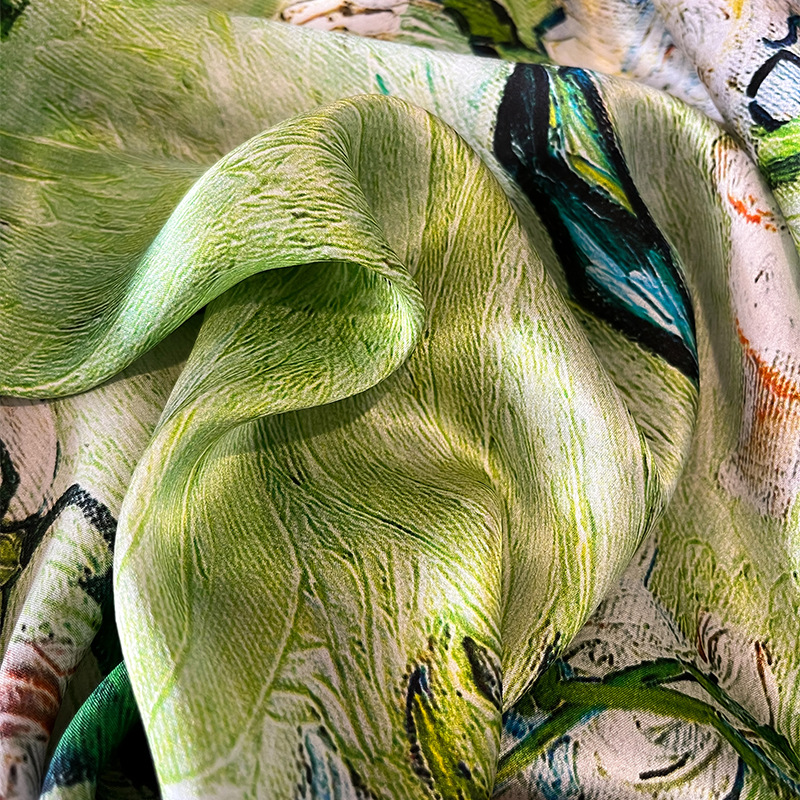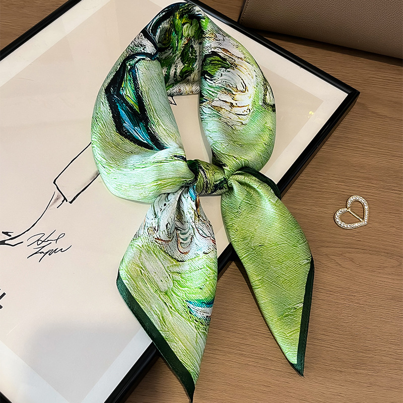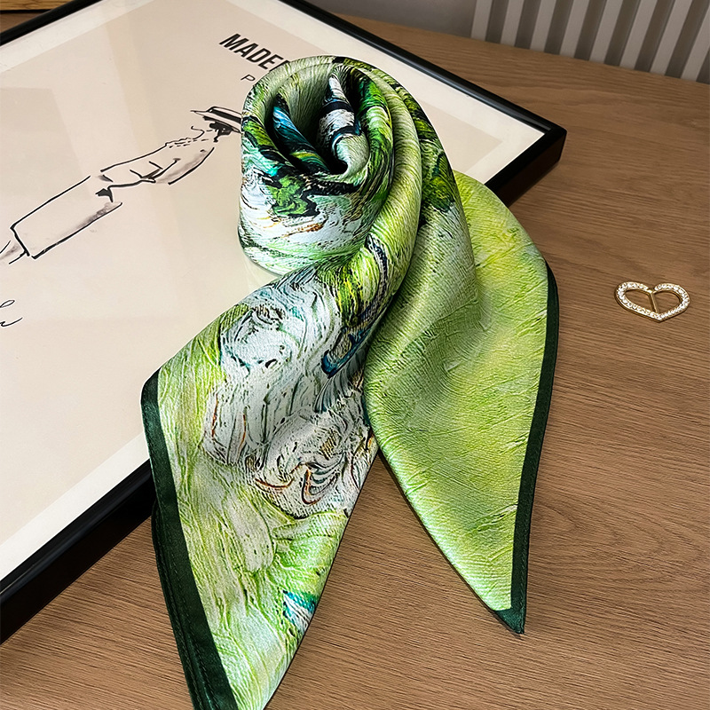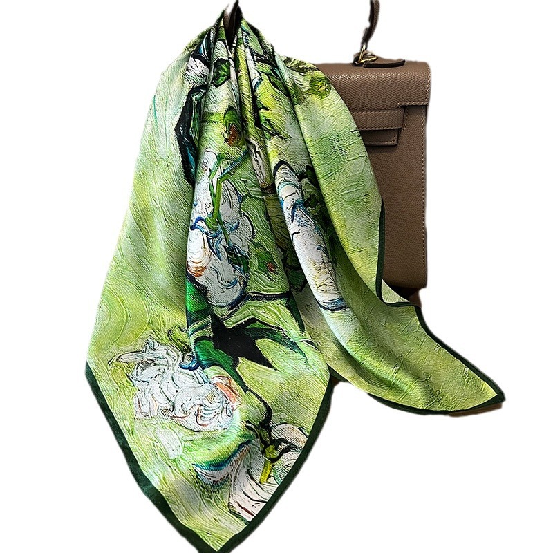 100%真丝丝巾女春季新款油画白玫瑰桑蚕丝丝巾时尚百搭优雅70方巾