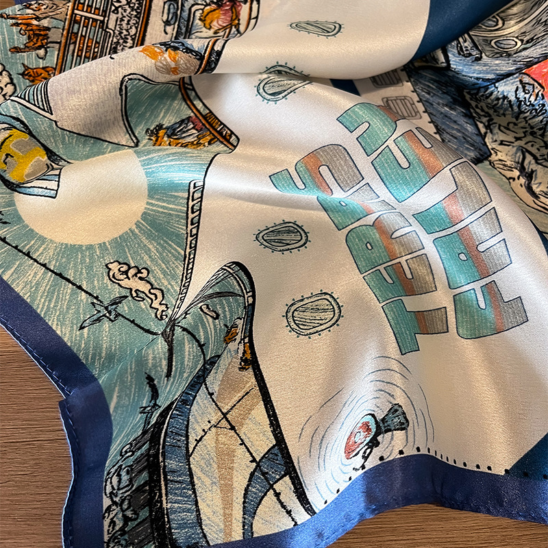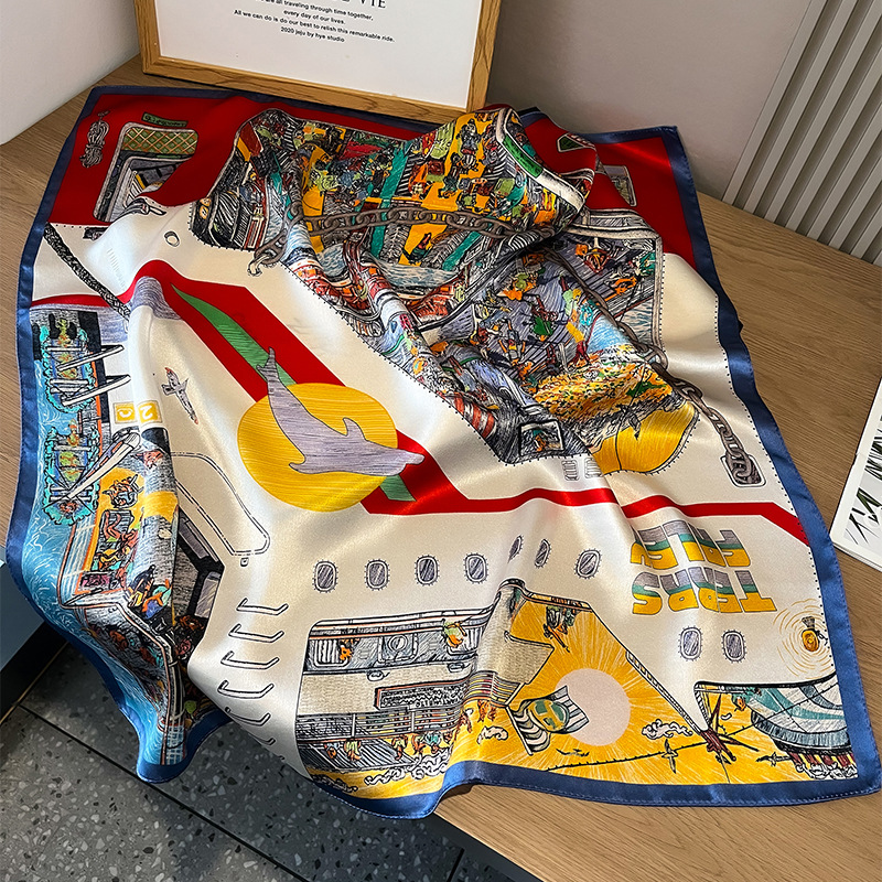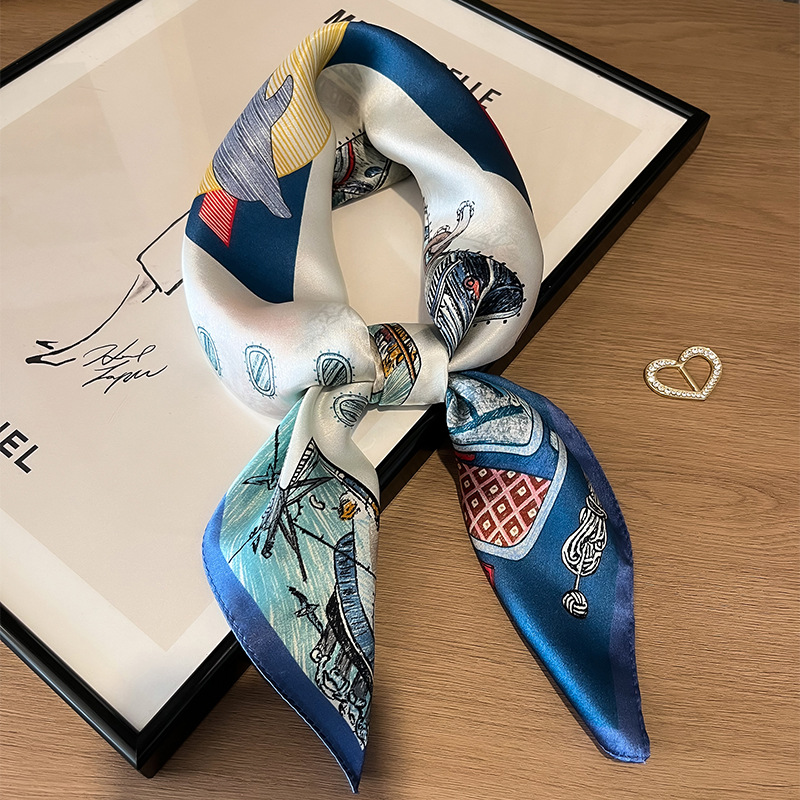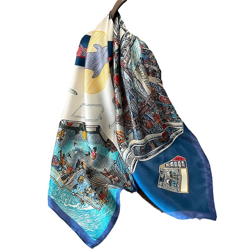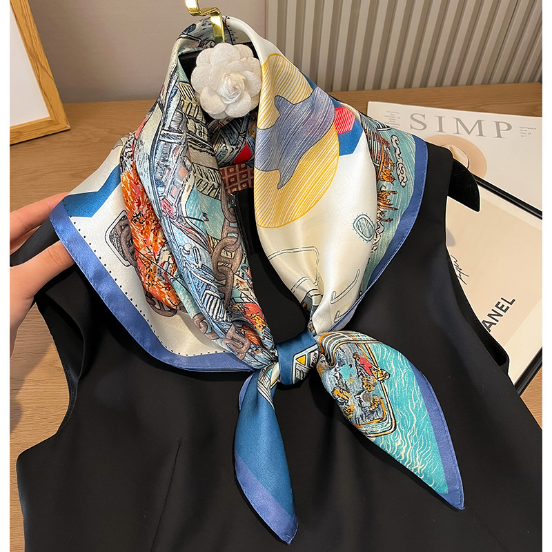 春季新款100%桑蚕丝丝巾女时尚轻奢游轮真丝丝巾高级感素绉缎方巾