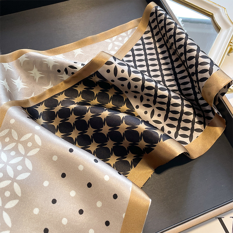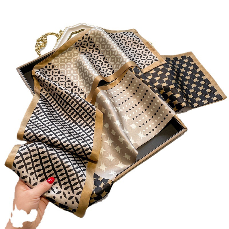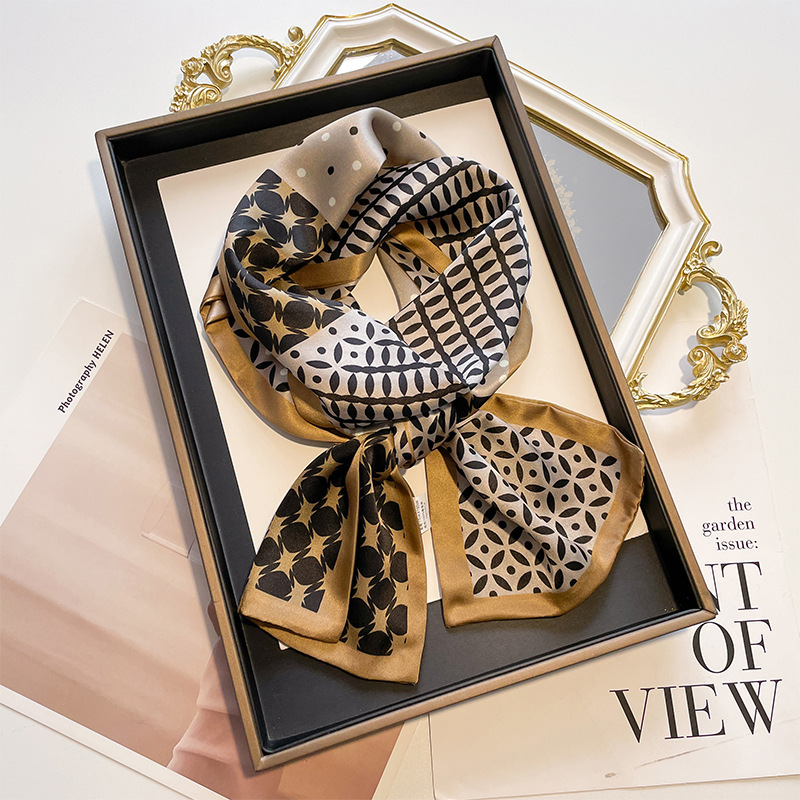 气质百搭高档素绉缎桑蚕丝丝巾女春夏季长款双层双面真丝飘带围巾
