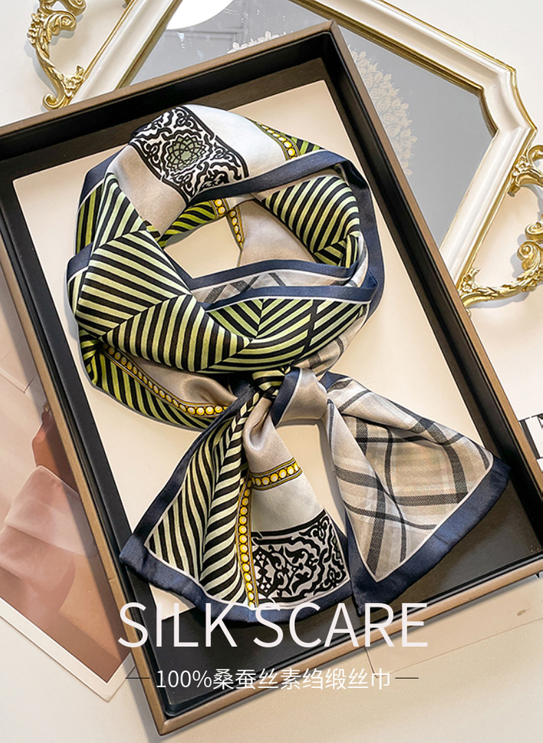 春夏季新款桑蚕丝缎面长条飘带女双面双色素绉缎真丝丝巾