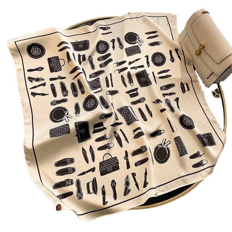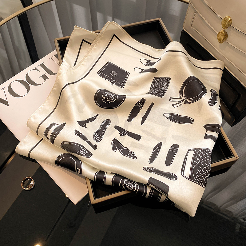 新款法式小香山茶花真丝丝巾70缎面印花桑蚕丝方巾高端轻奢围巾女