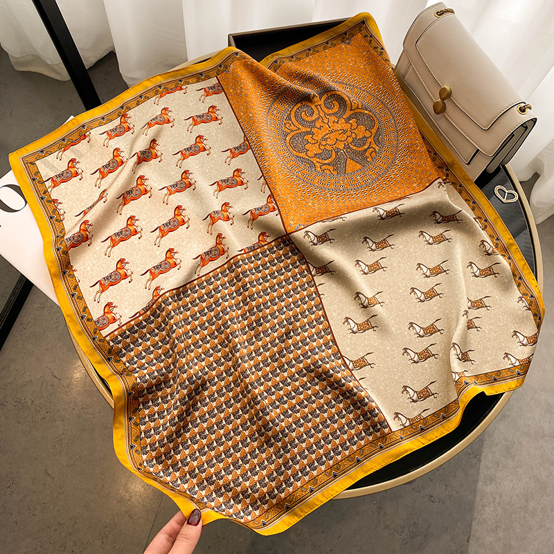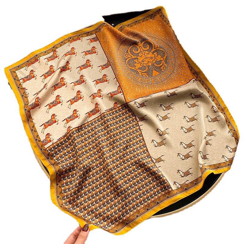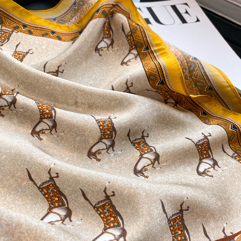 丝巾女新款百搭真丝印花丝巾高端桑蚕丝方巾伴手礼简约时尚围巾