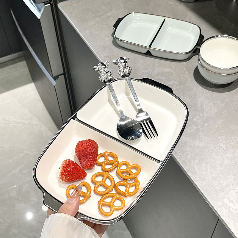陶瓷大人银边分格餐盘减肥专用高级感轻奢分隔盘子两格餐盘减脂
