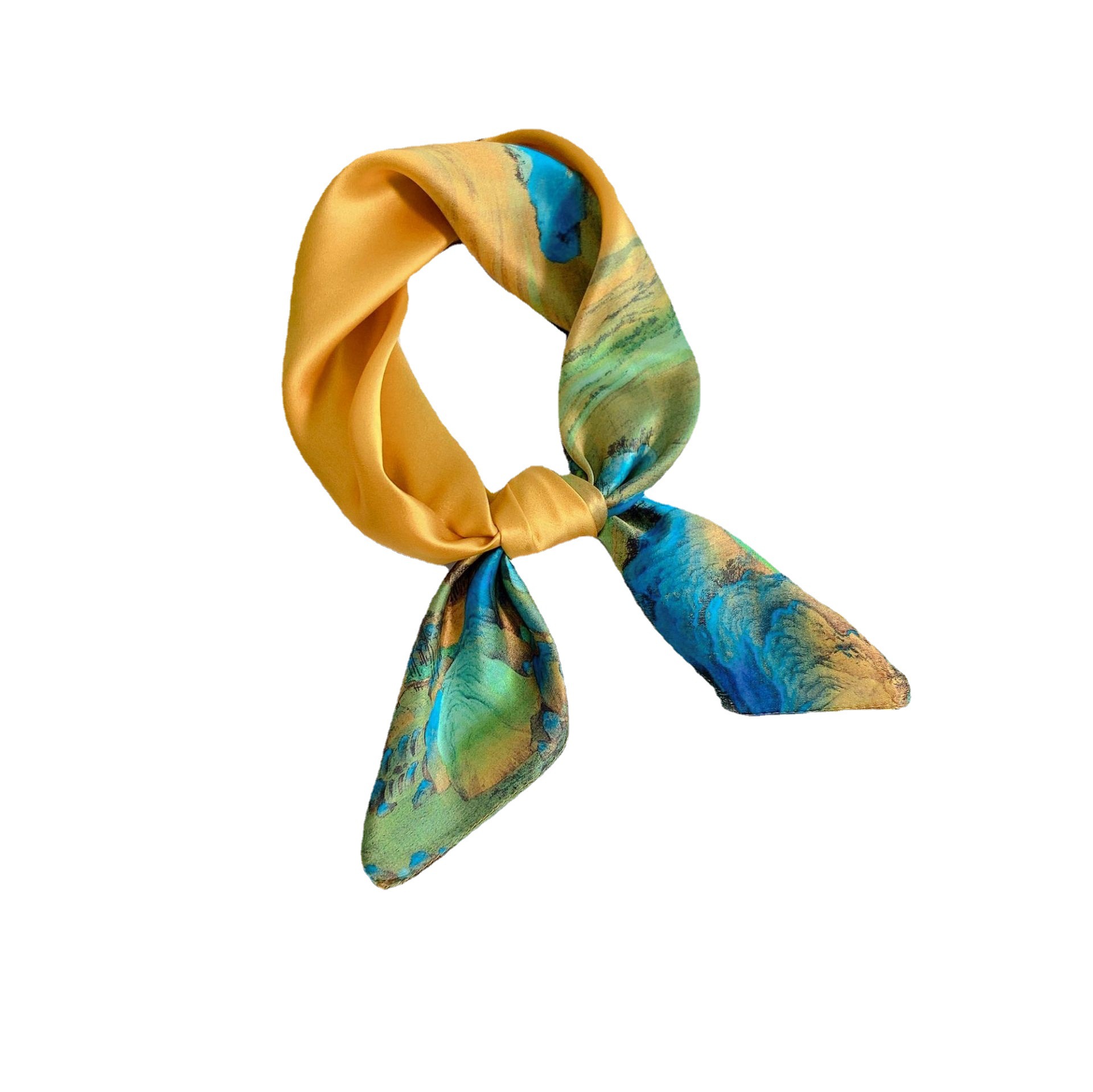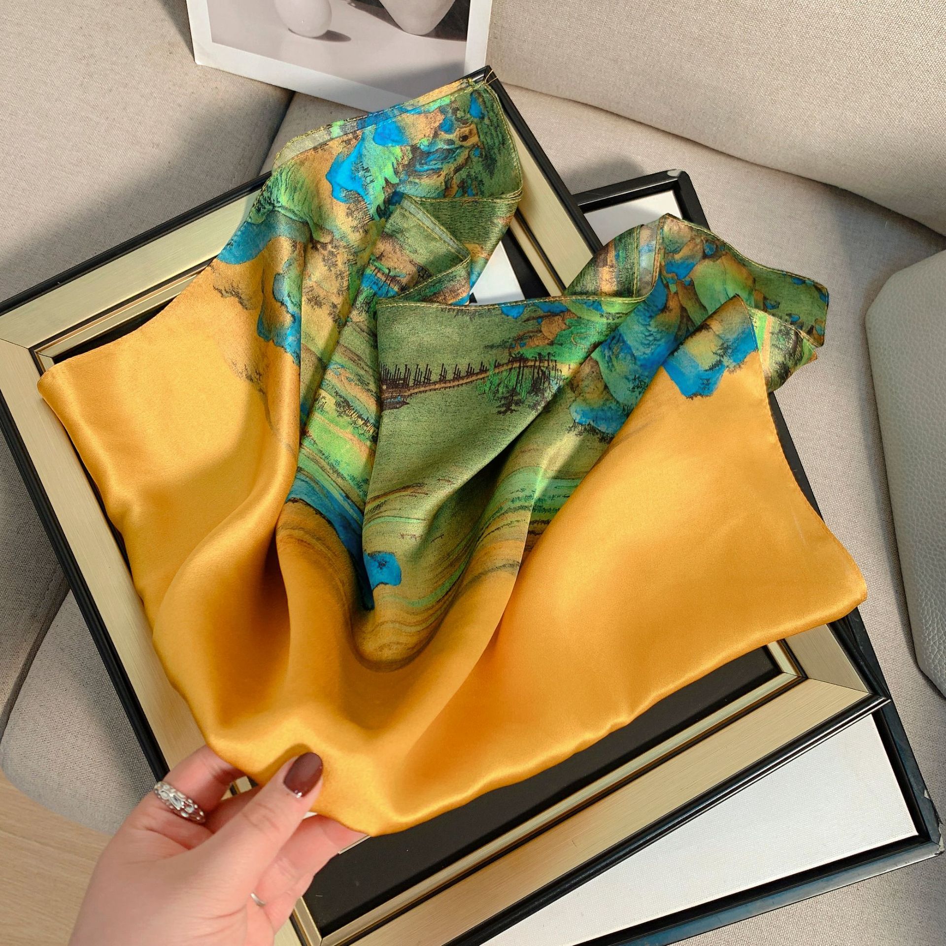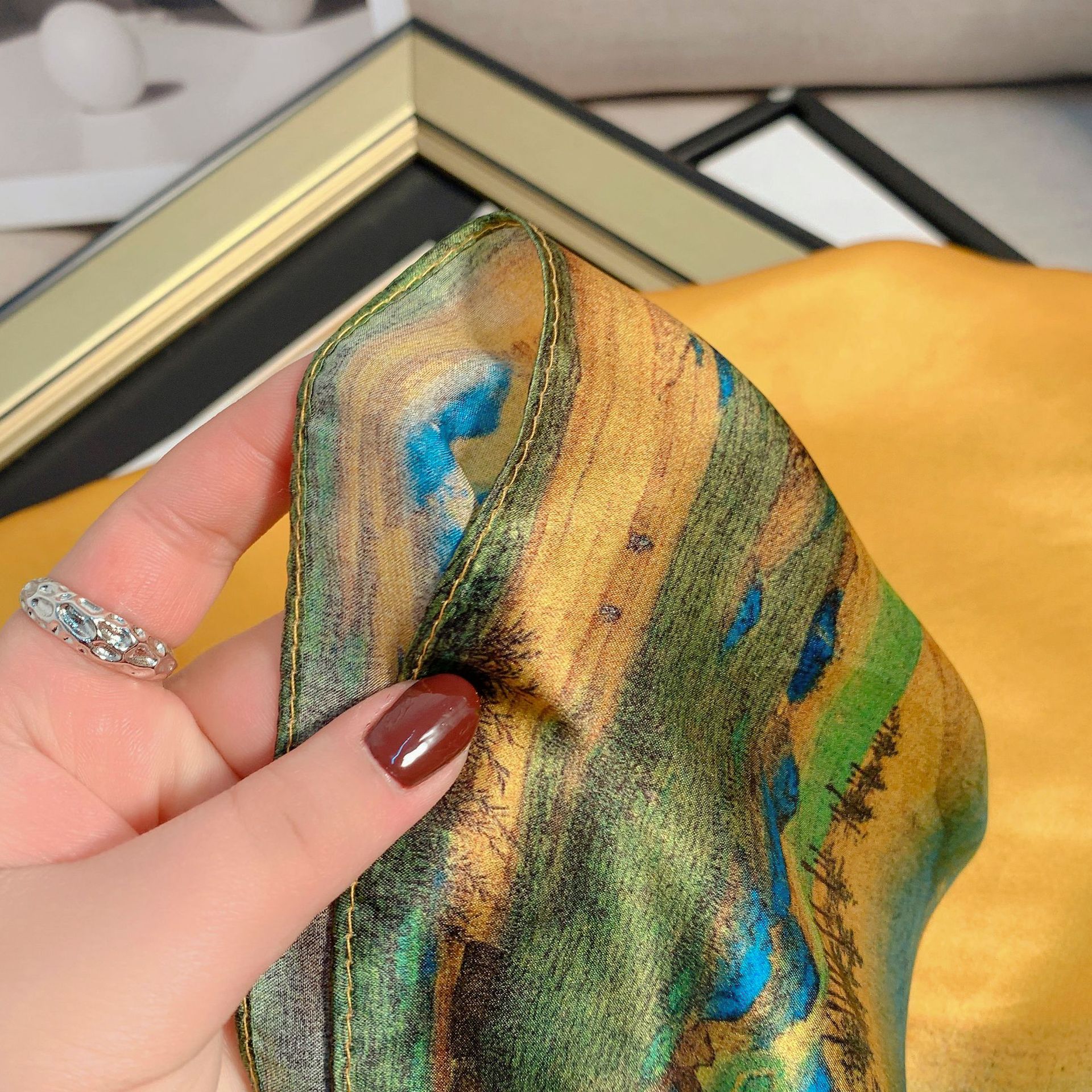 千里江山图!高端国风真丝丝巾纯桑蚕丝围巾方巾披肩女百搭小领巾