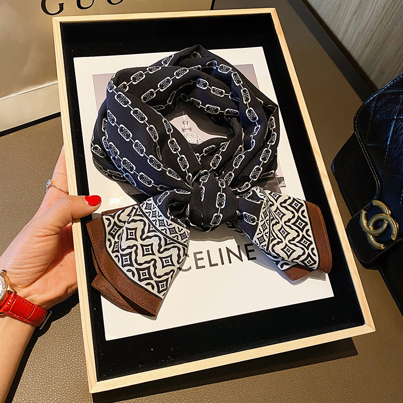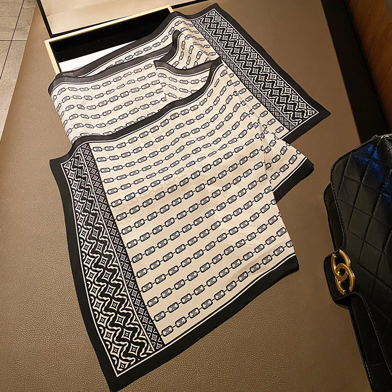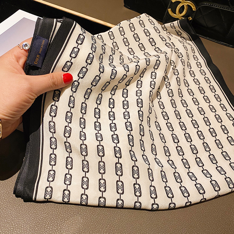 新款情人扣链条100%桑蚕丝丝巾女春夏薄款印花装饰真丝领巾