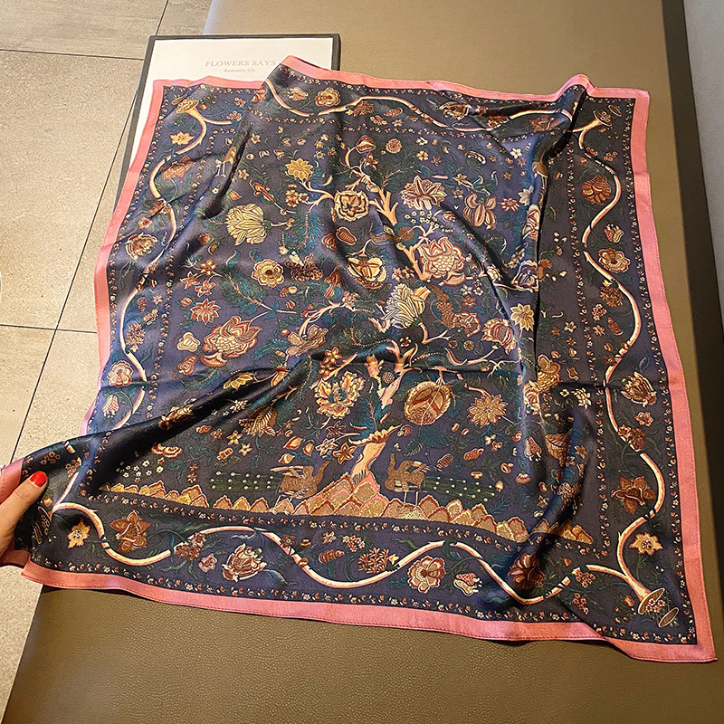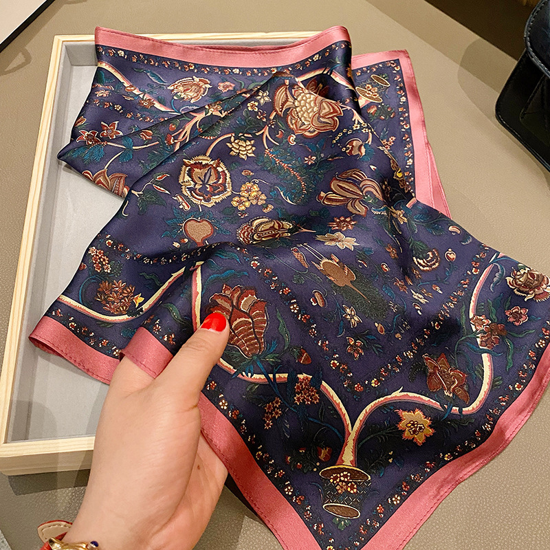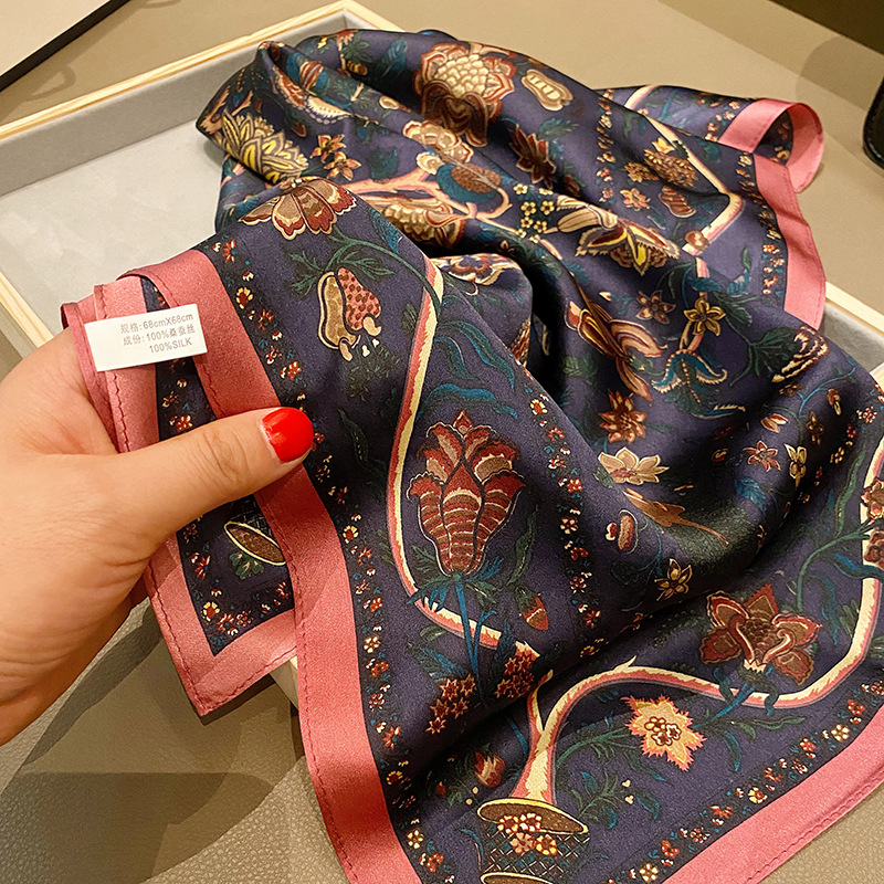 68cm真丝小方巾丝巾春秋时尚百搭围巾女送礼复古装饰桑蚕丝小领巾