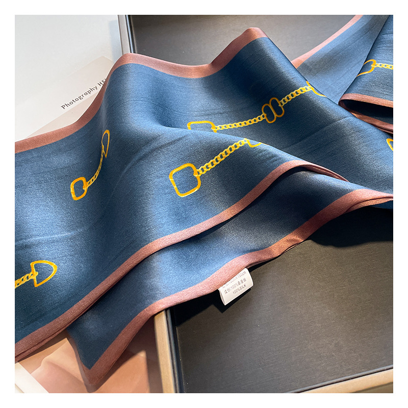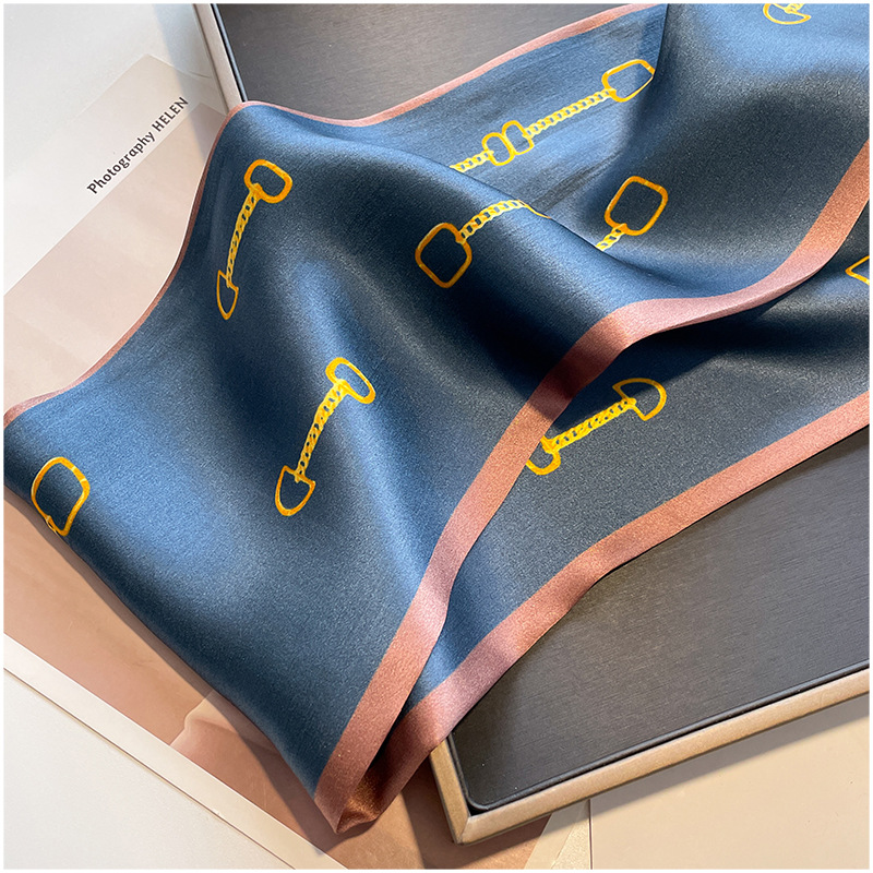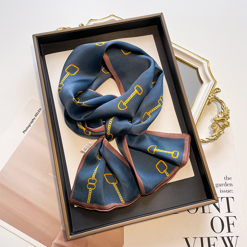 韩版清新马蹄链双层真丝飘带桑蚕丝职业领巾真丝丝巾女绑包长丝巾