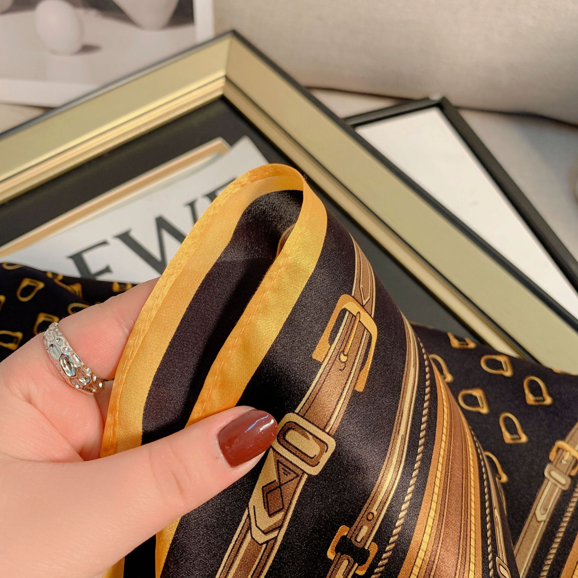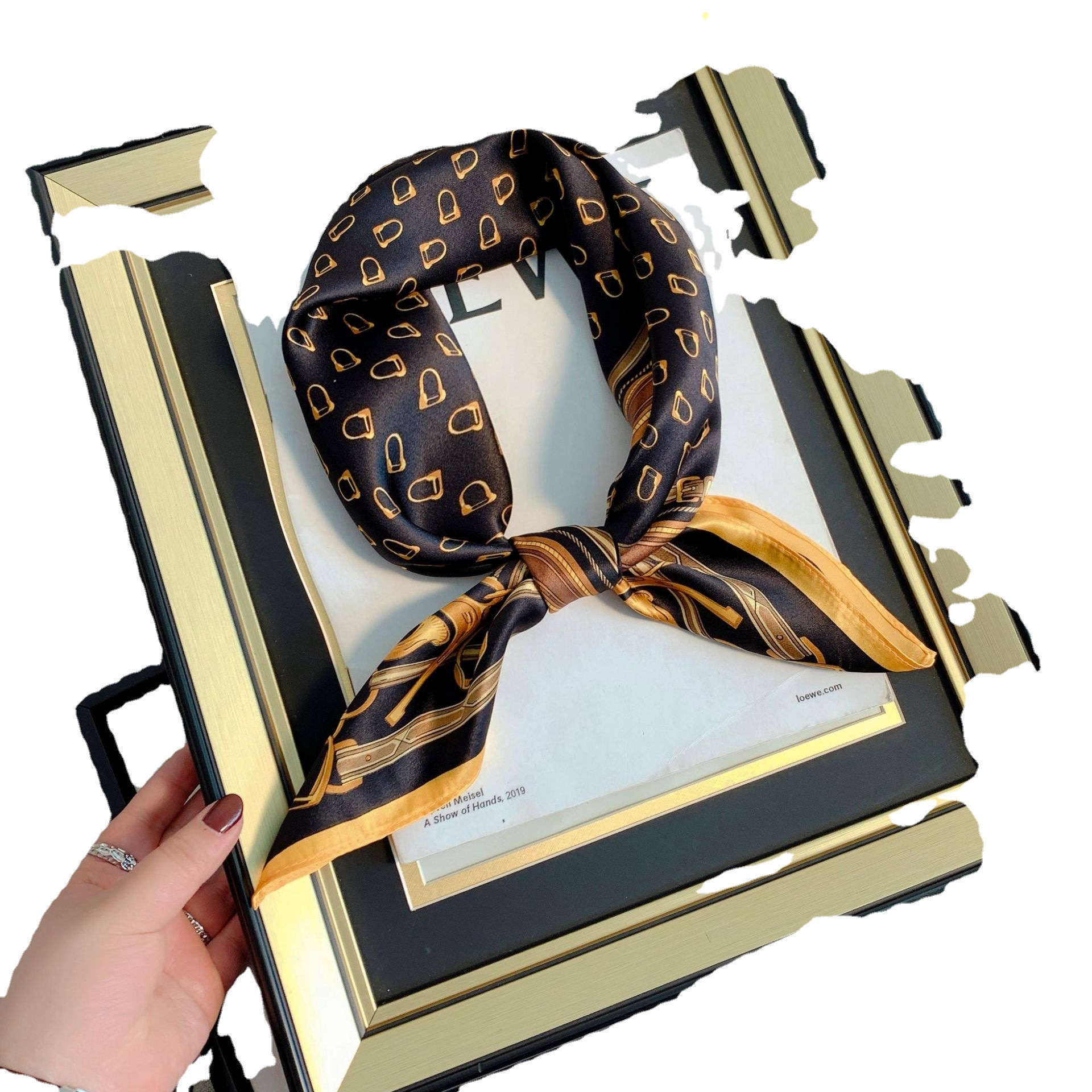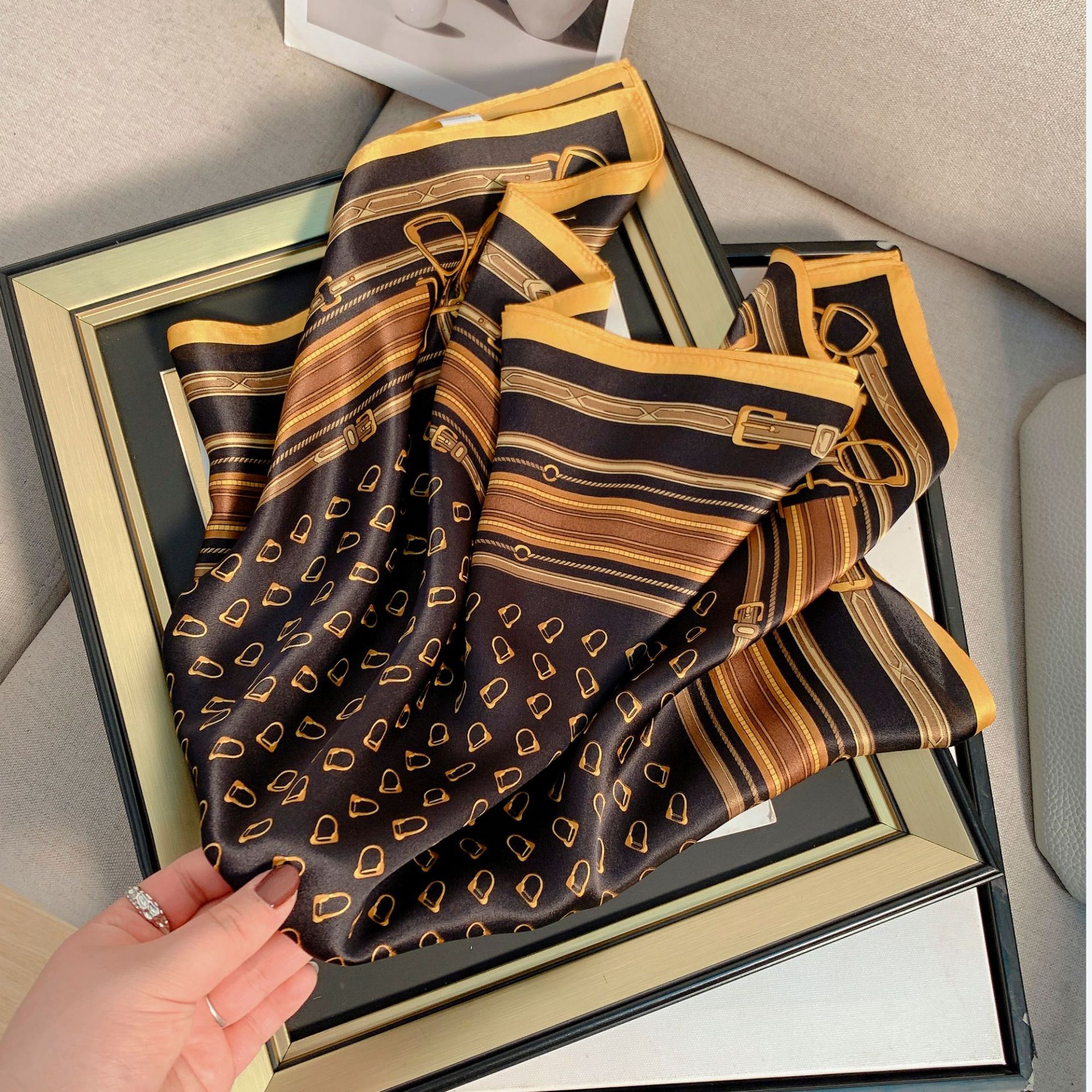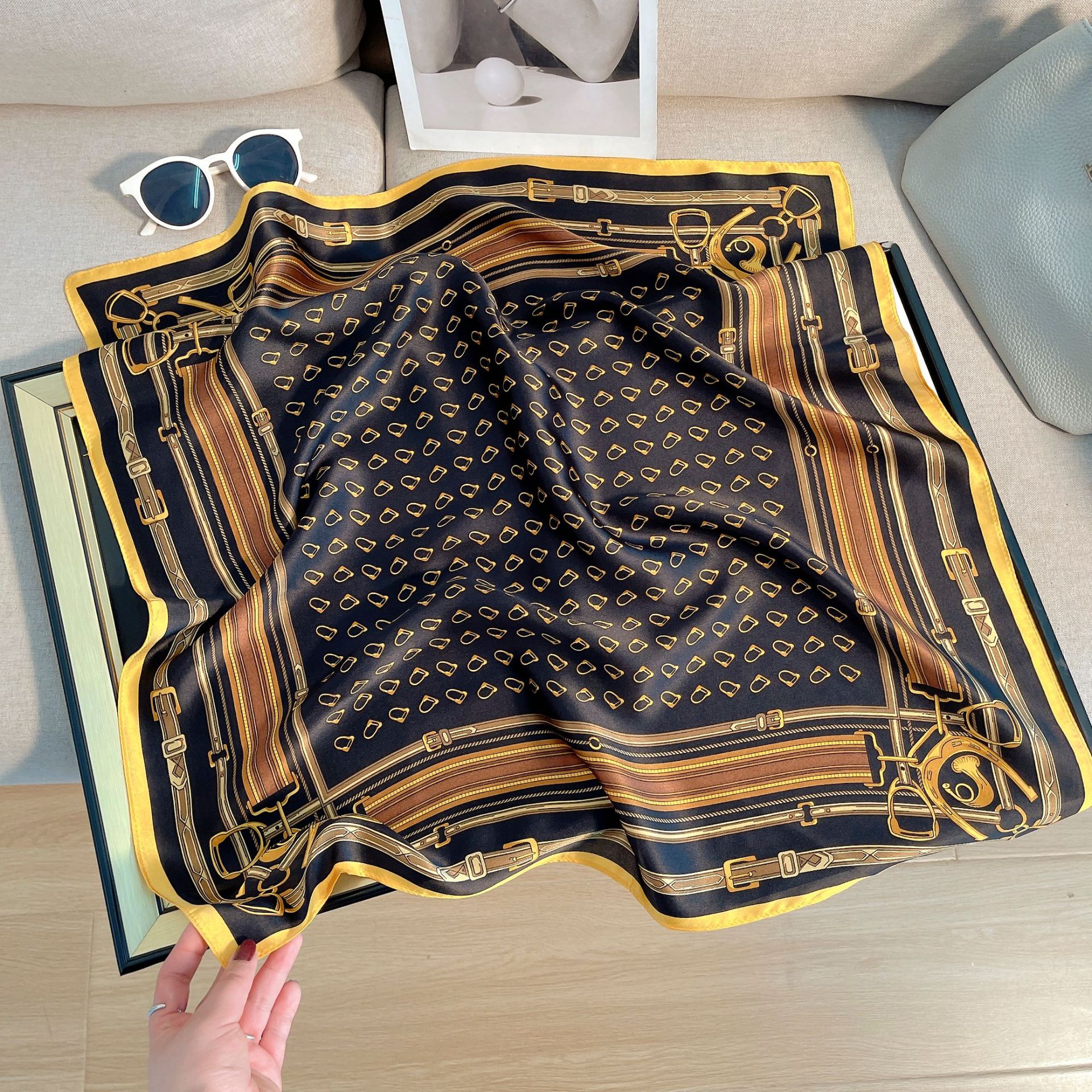 黑金马车链条丝巾100%桑蚕丝薄款丝巾女时尚经典方巾真丝丝巾