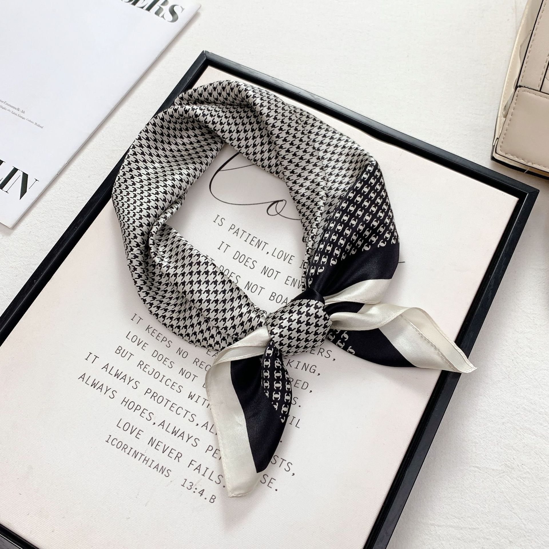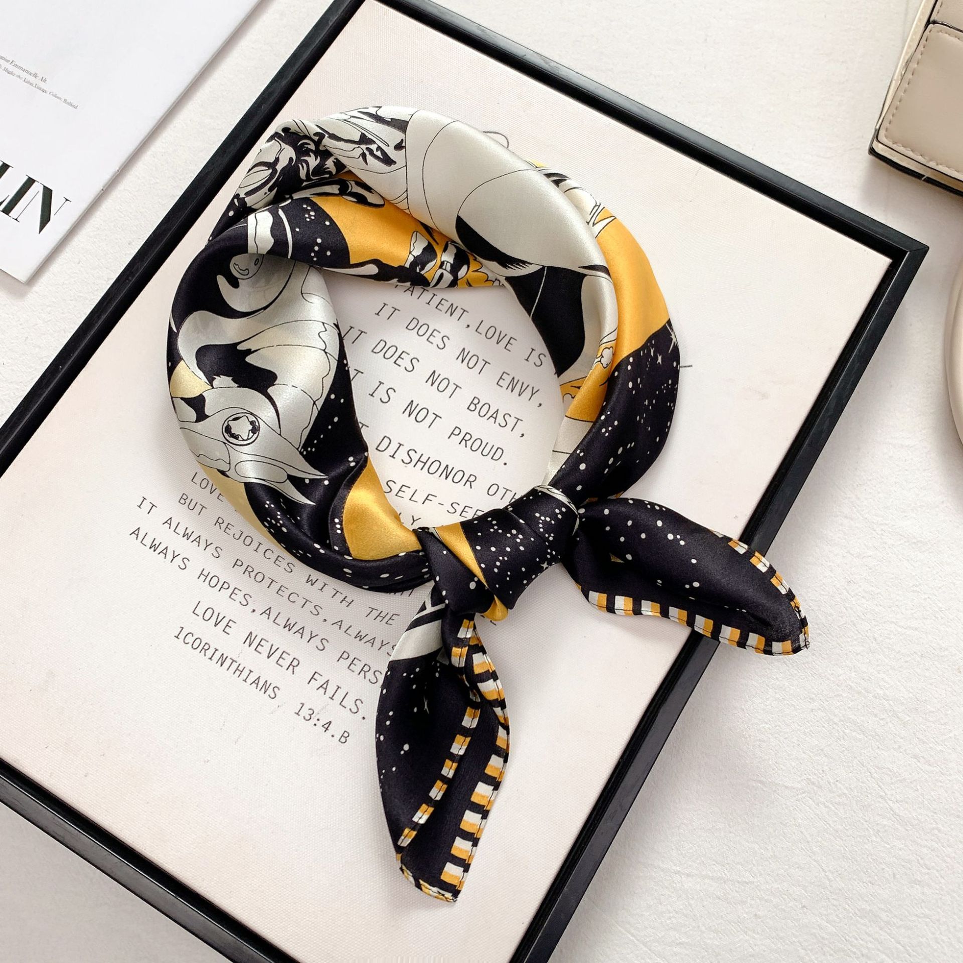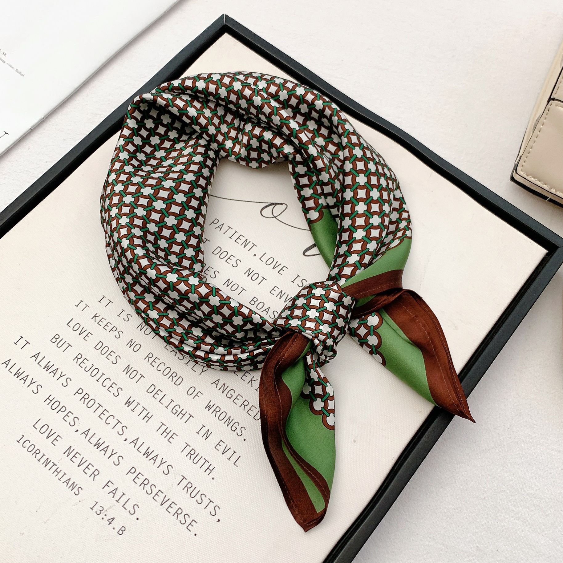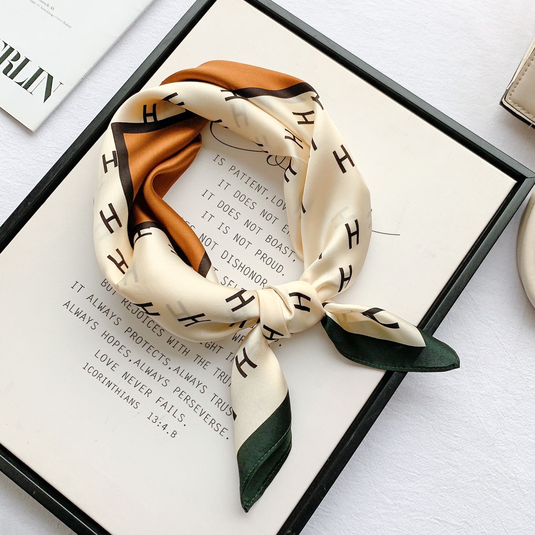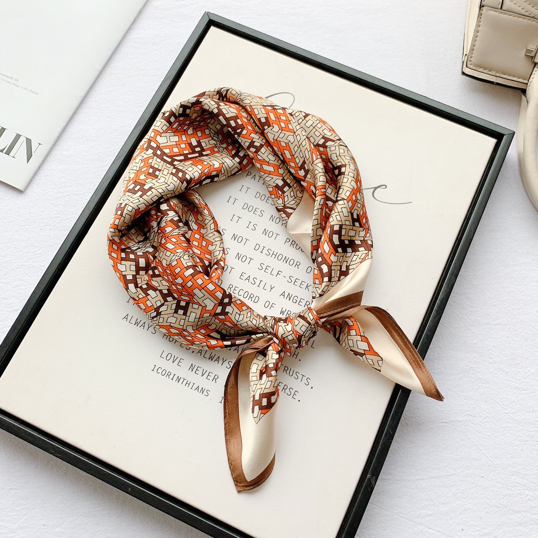 丝绸香槟色羽毛花卉真丝丝巾时尚印花100%桑蚕丝70方巾