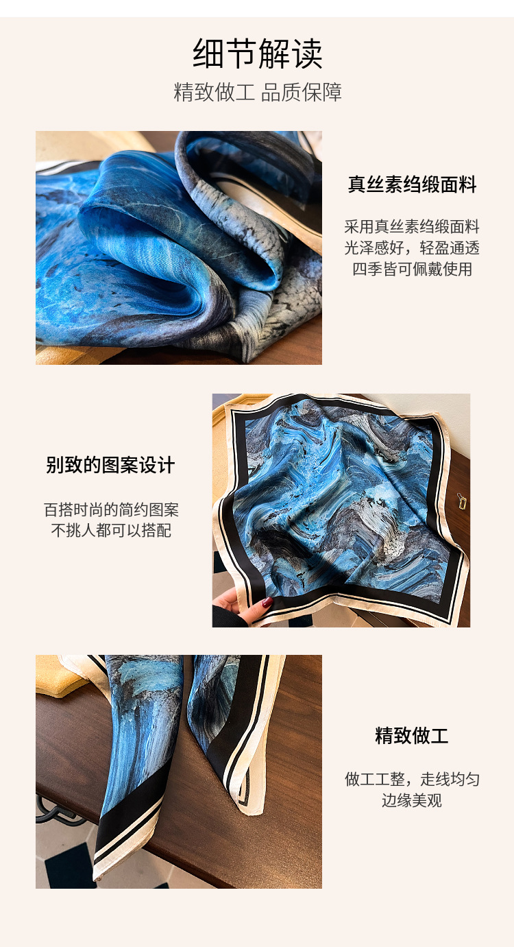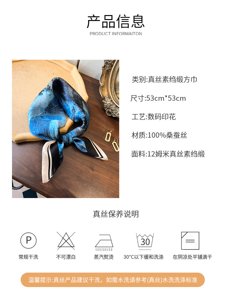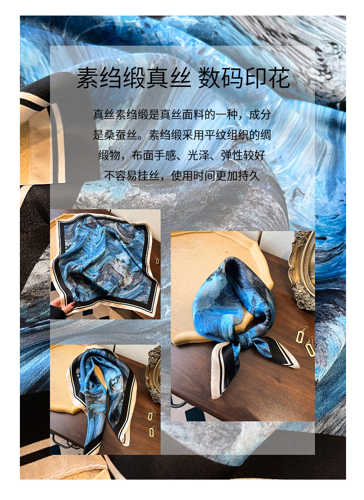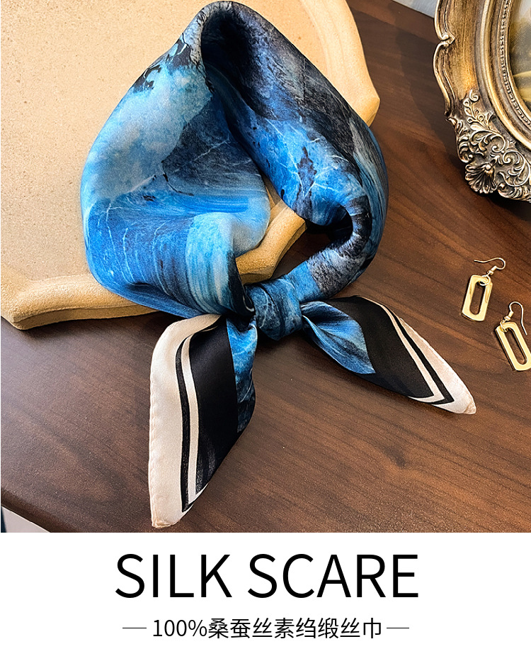 韩版高级感真丝丝巾女春季热款气质时尚桑蚕丝丝巾百搭53小方巾