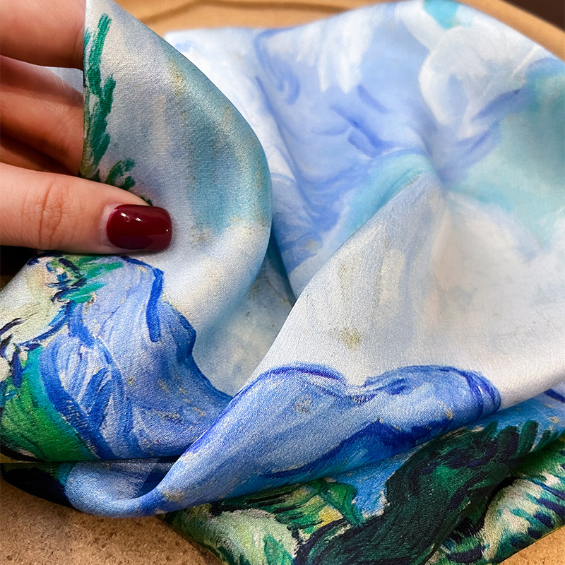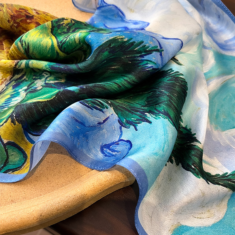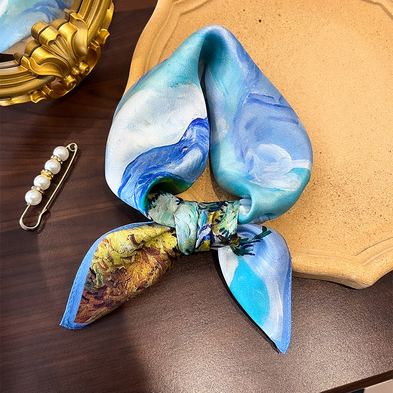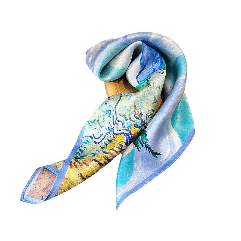 新款油画麦田真丝丝巾女春季百搭气质时尚桑蚕丝丝巾53小丝巾