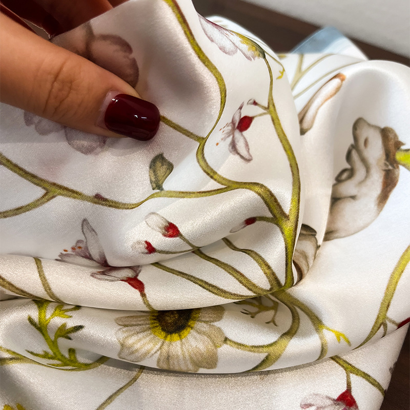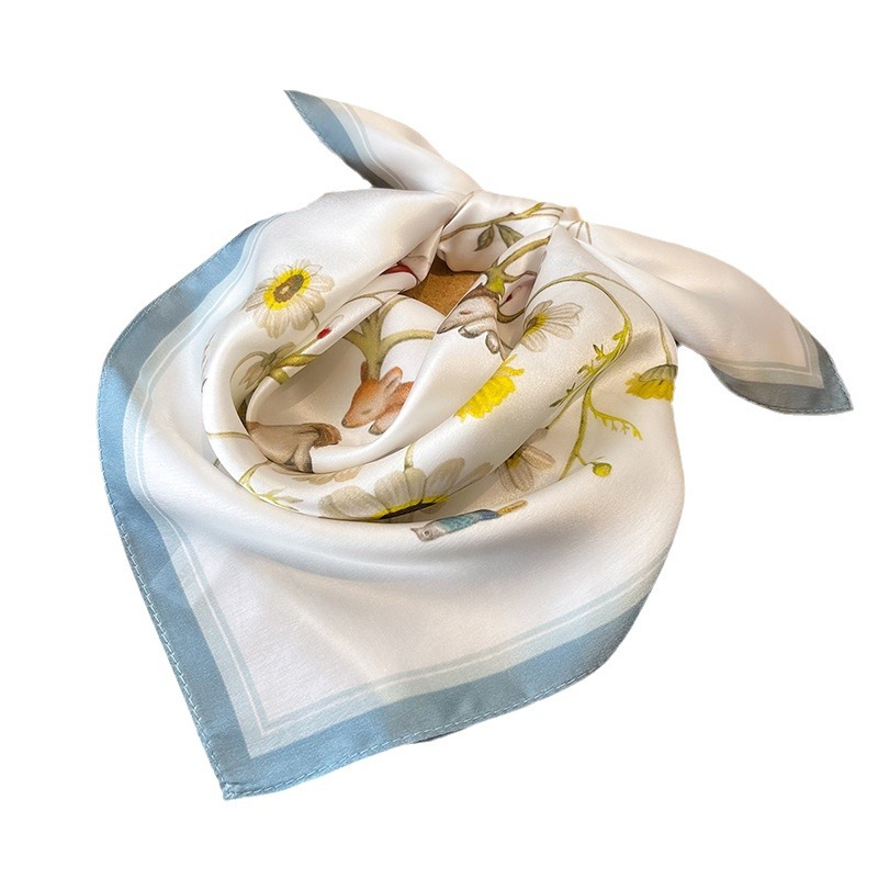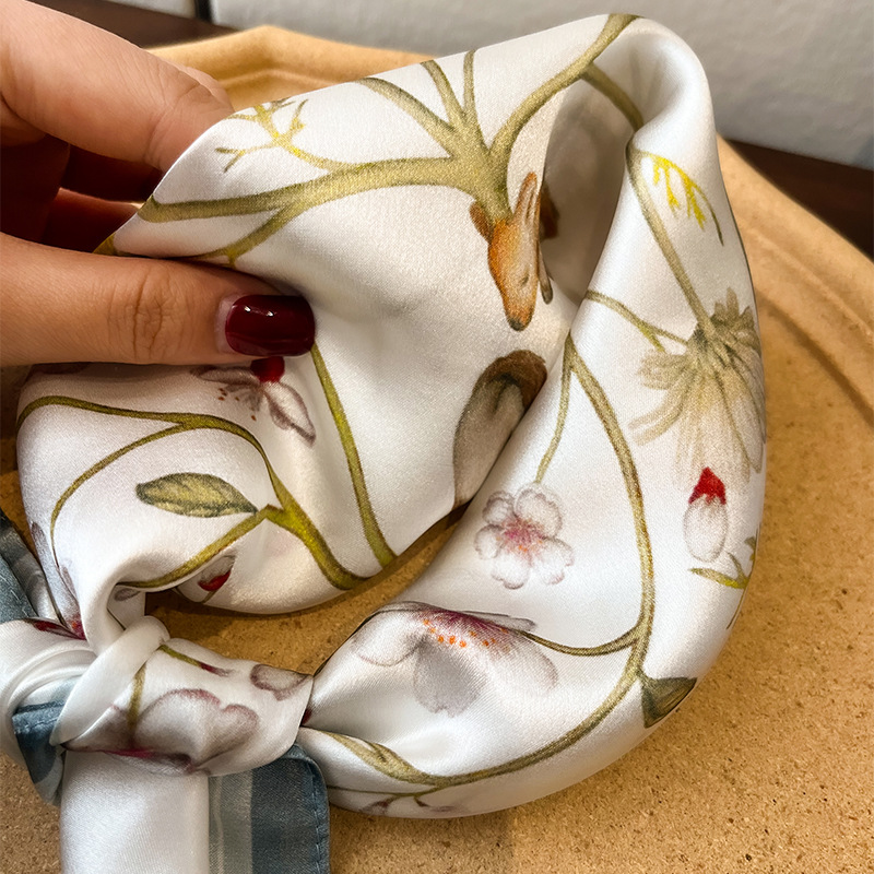 春季新款小鹿真丝丝巾女清新时尚桑蚕丝丝巾百搭气质53小丝巾