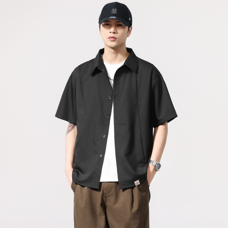 轻薄透气短袖衬衫男夏季新款垂感宽松高级感痞帅衬衣男装寸衫