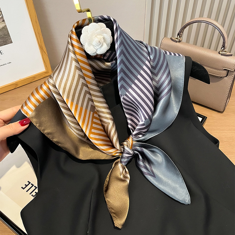 新款百搭设计感真丝丝巾女时尚简约桑蚕丝70方巾轻奢素绉缎丝巾