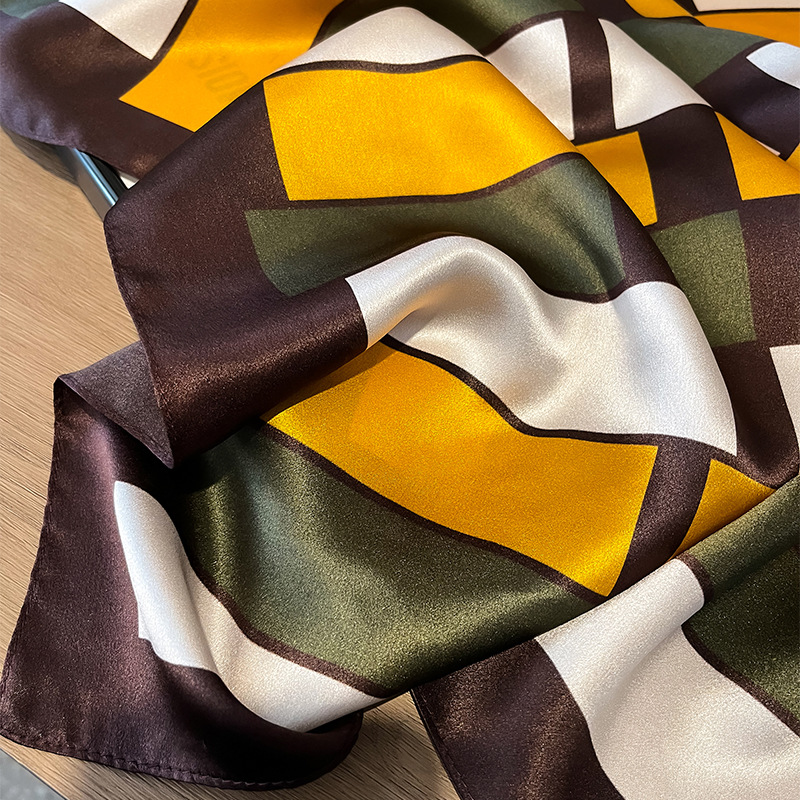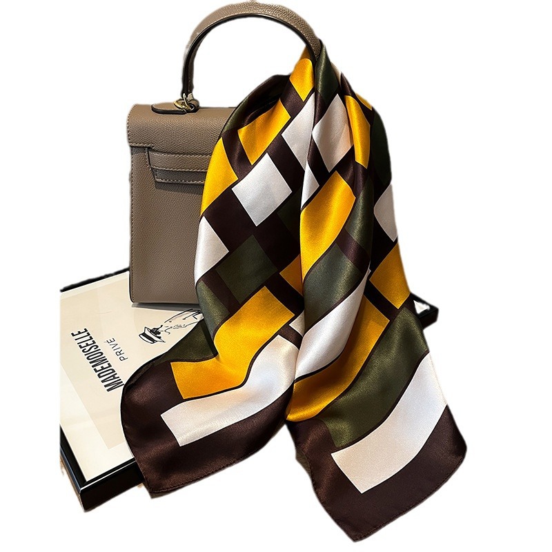 春季70真丝丝巾女新款通勤简约百搭桑蚕丝丝巾时尚优雅素绉缎方巾