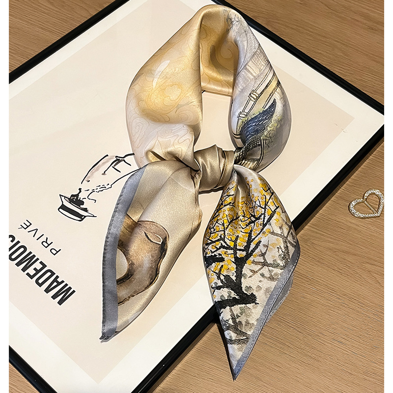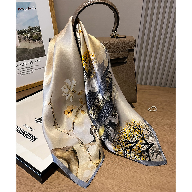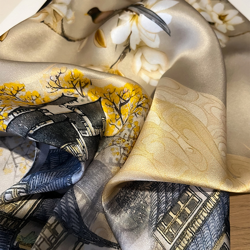 春季新款典雅真丝丝巾女新中式时尚素绉缎70方巾100%桑蚕丝丝巾