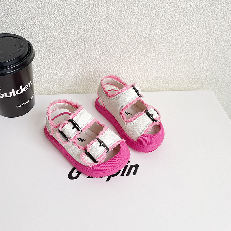 女宝婴幼儿包头凉鞋夏季新款韩版小香风魔术贴学步女童沙滩鞋