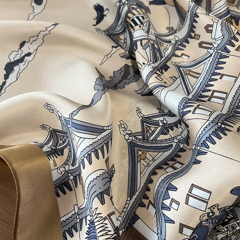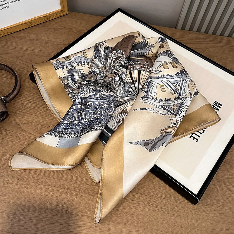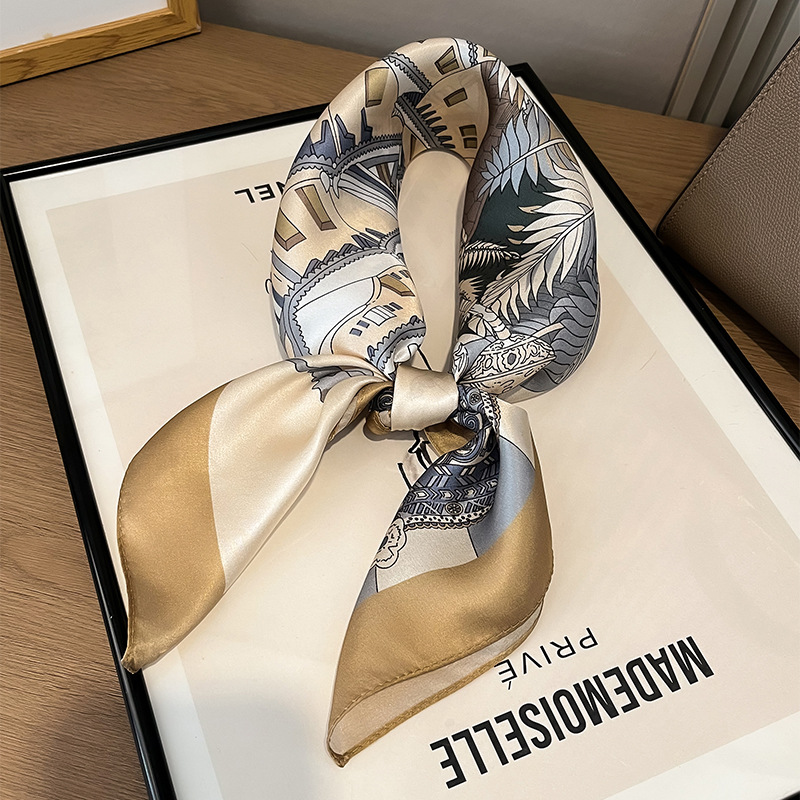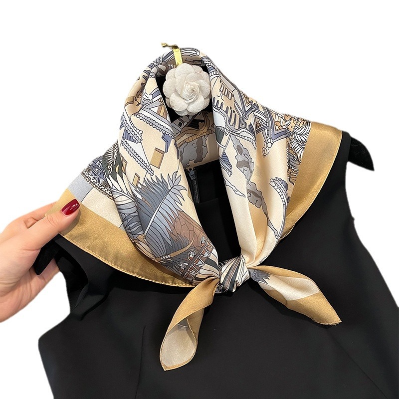 春季时尚真丝丝巾女新款轻奢百搭桑蚕丝70方巾优雅素绉缎丝巾