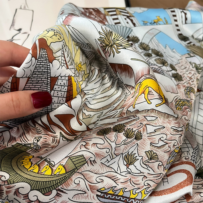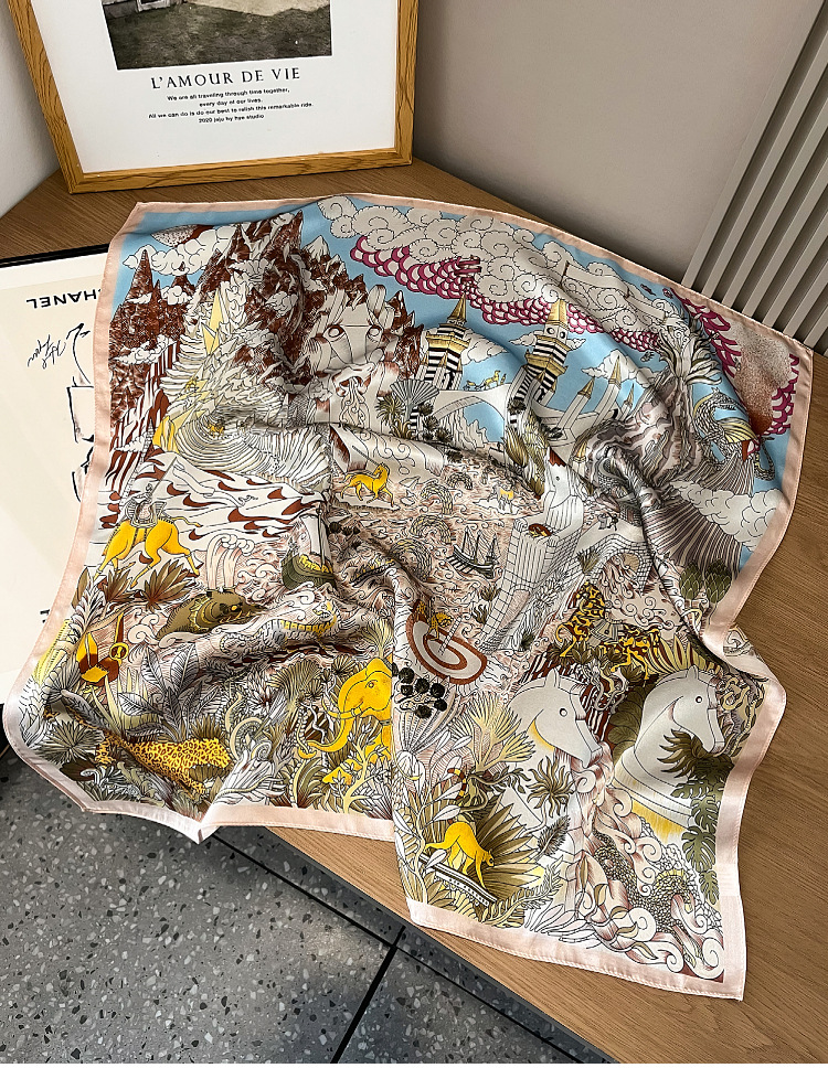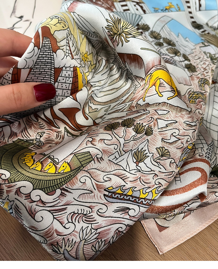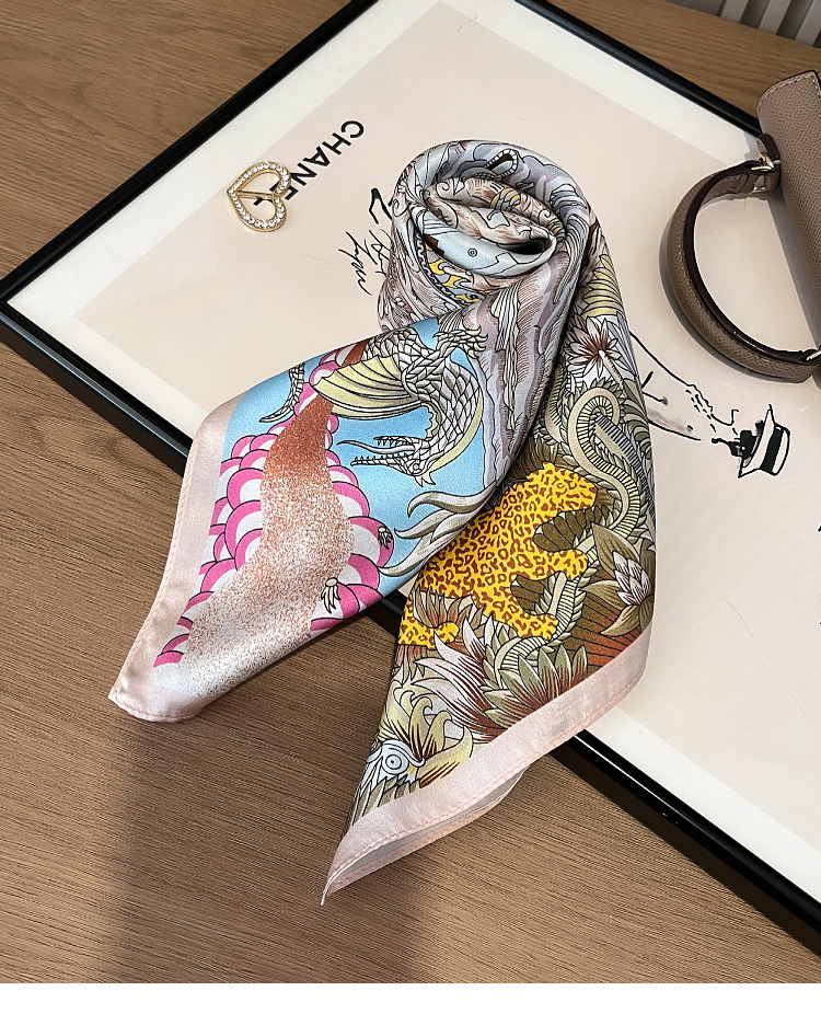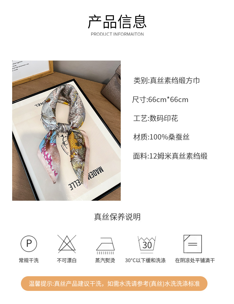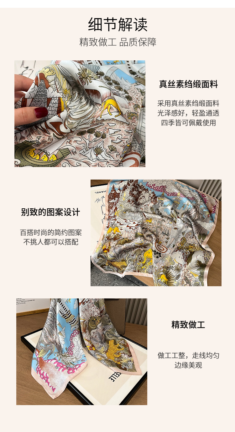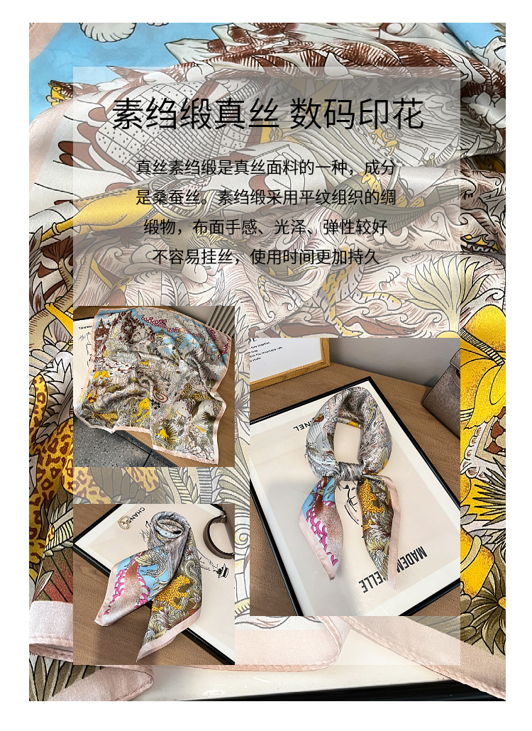 时尚轻奢真丝丝巾女新款春季高级感桑蚕丝70丝巾百搭素绉缎方巾
