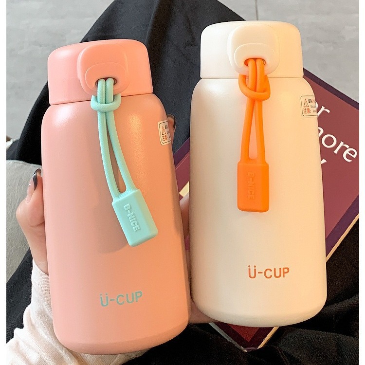 新款艾可思仲圆保温杯时尚简约带提绳大肚杯户外便携小巧可爱水杯