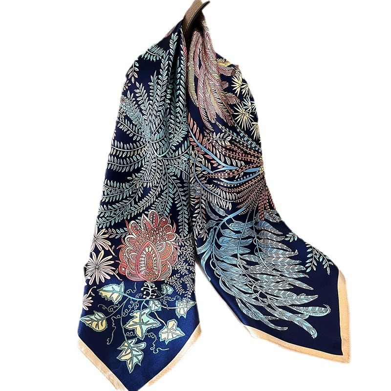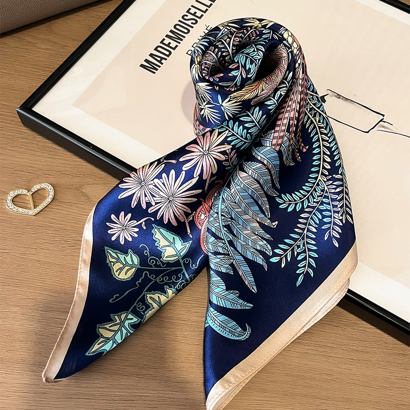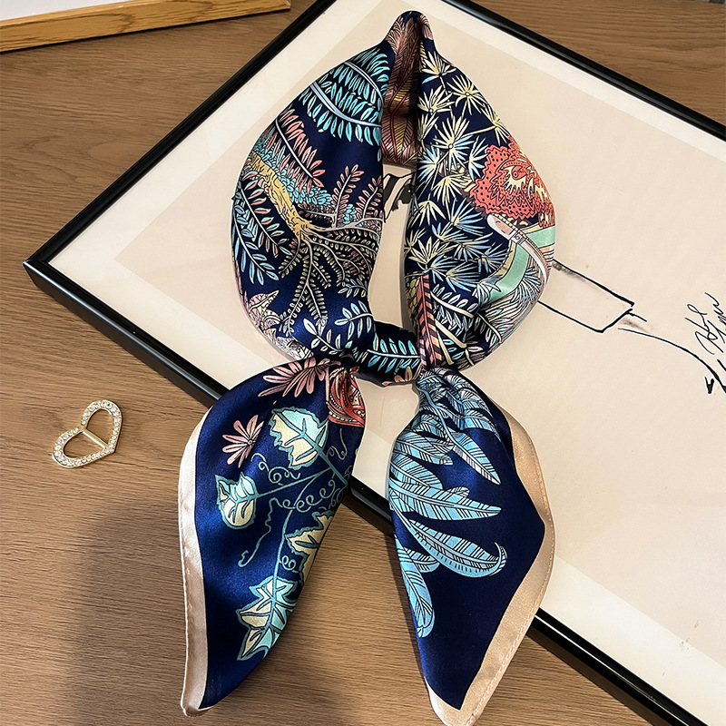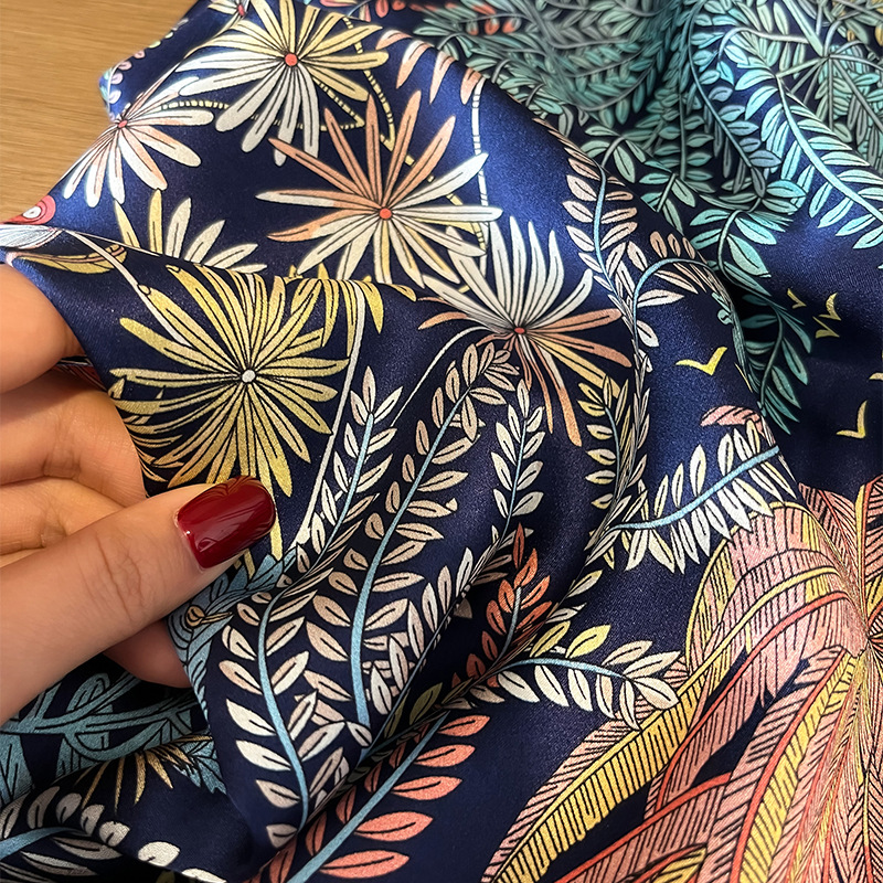 春季时尚轻奢真丝丝巾女新款热带植物园素绉缎方巾百搭桑蚕丝丝巾