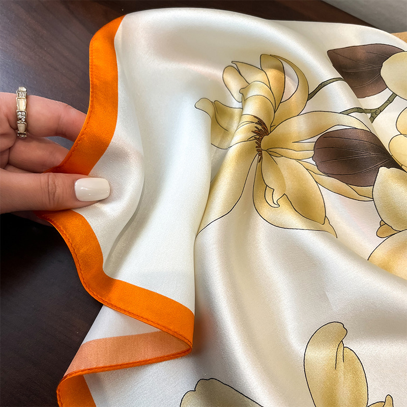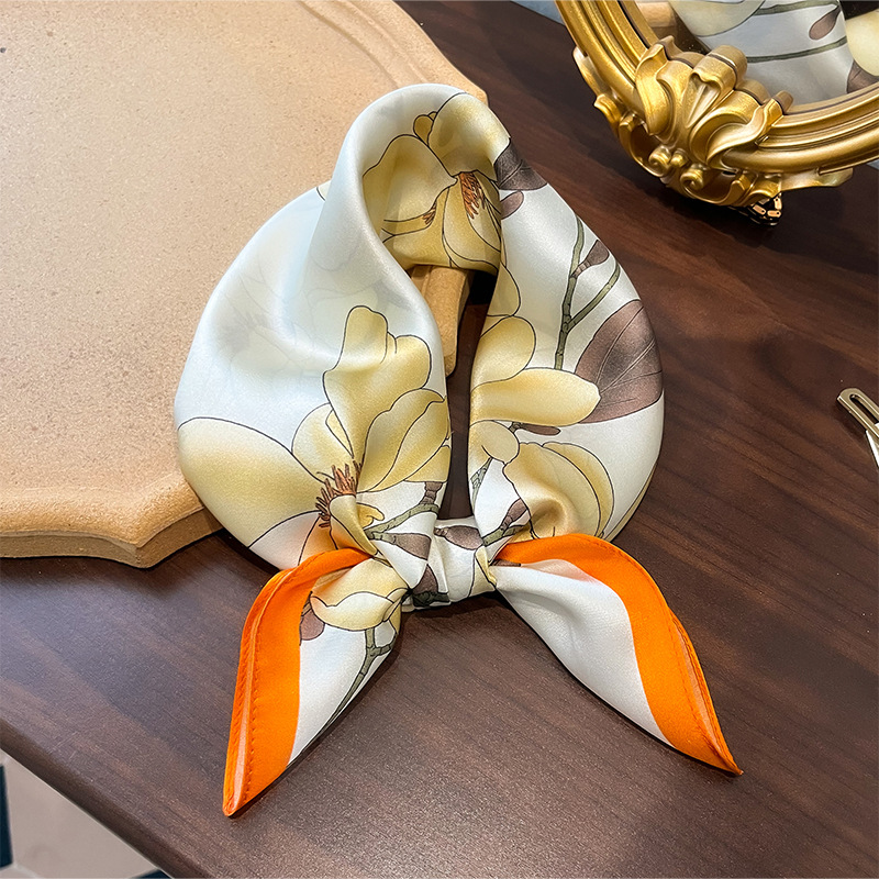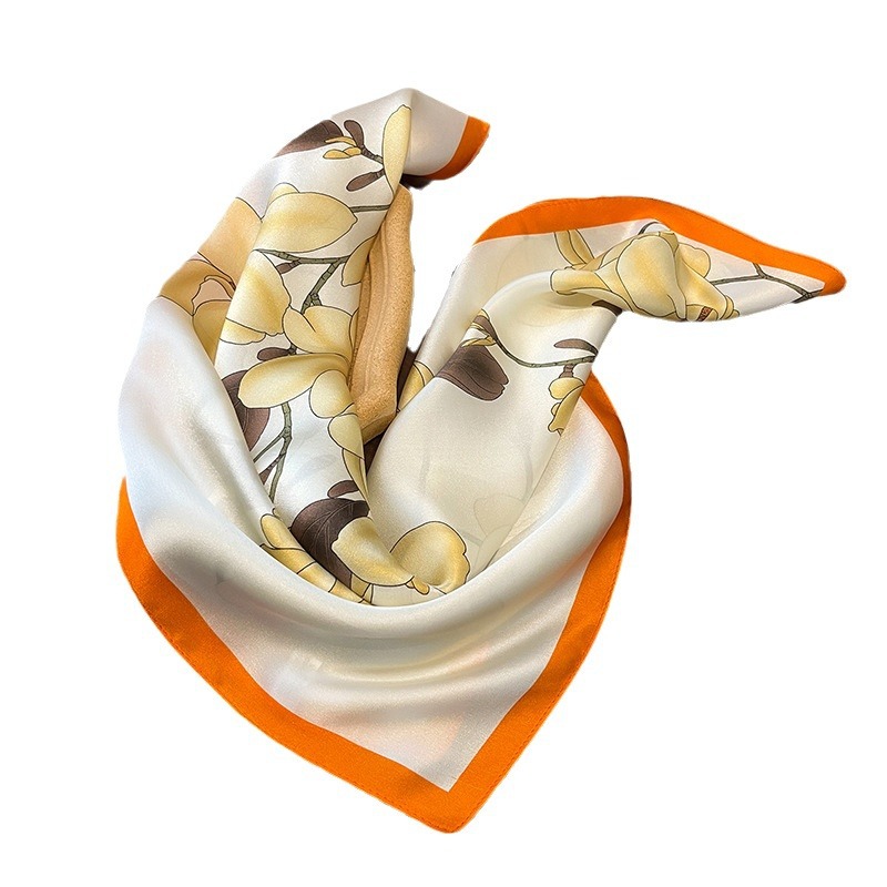 100%桑蚕丝丝巾女新款气质优雅玉兰真丝方巾高级感百搭53小方巾