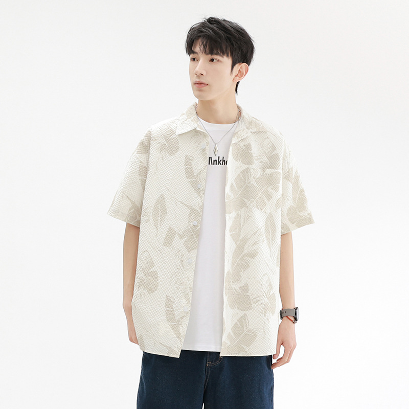 男士短袖衬衫夏季新款潮牌满印花衬衫宽松青少年休闲外套