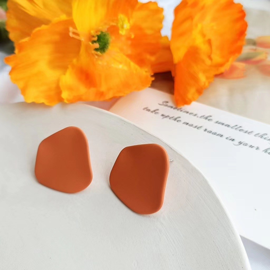 橘色耳环女气质橙色橙色耳饰复古不规则艺术感几何哑光磨砂耳钉