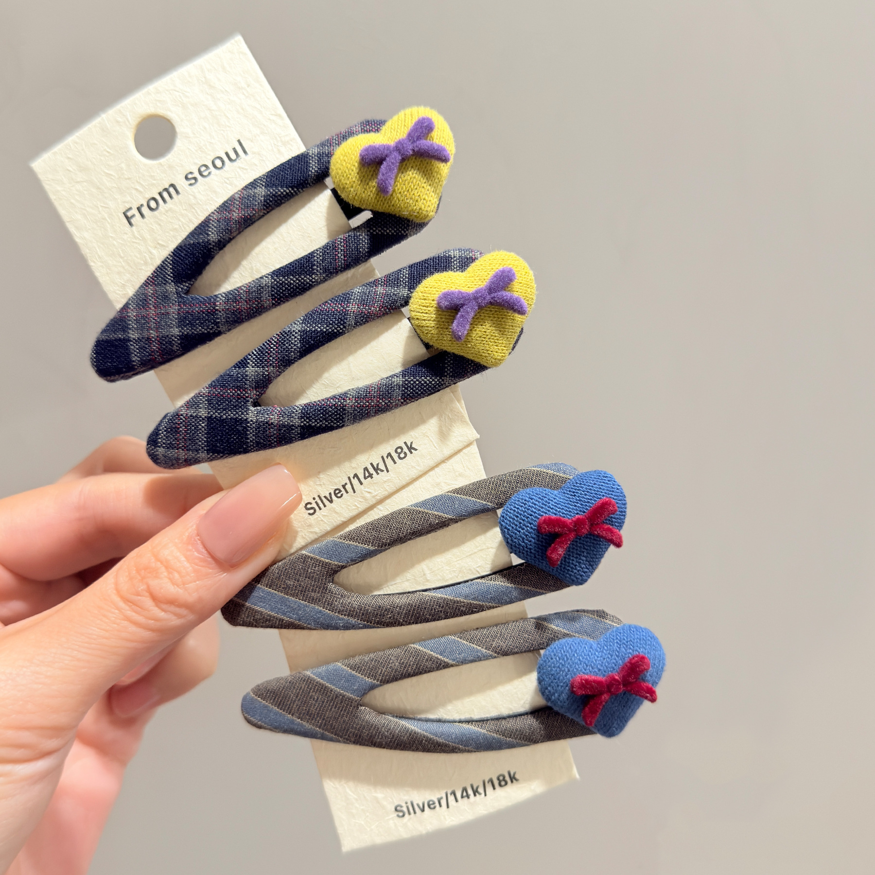 韩国百搭撞色格纹爱心蝴蝶结发夹休闲少女通勤侧边刘海碎发夹发饰