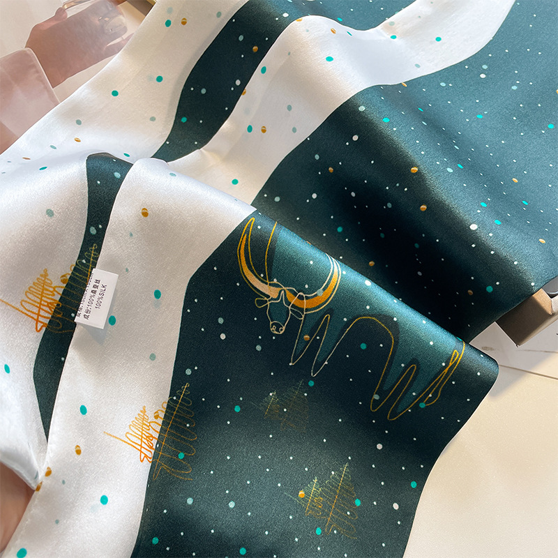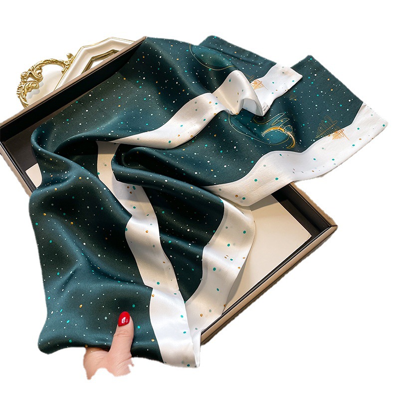 彩色星空印花双层飘带12姆米桑蚕丝真丝丝巾女15*150长条领巾