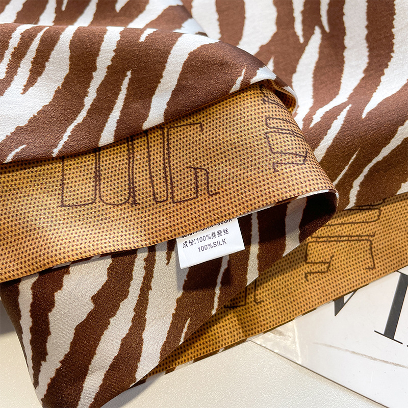 复古高级感咖色斑马纹印花双层真丝丝巾双面双色桑蚕丝轻奢飘带