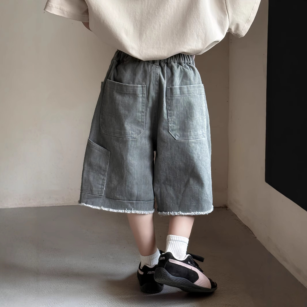 2025年夏季男童新款男孩复古牛仔显瘦宽松休闲阔腿短裤中裤潮炒色