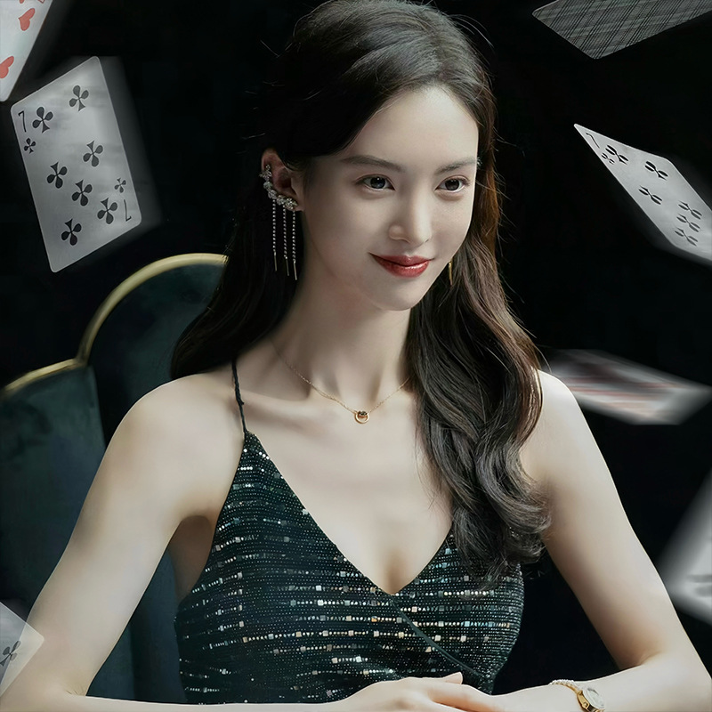 气质锆石花朵流苏耳钉耳骨夹一体式轻奢耳饰