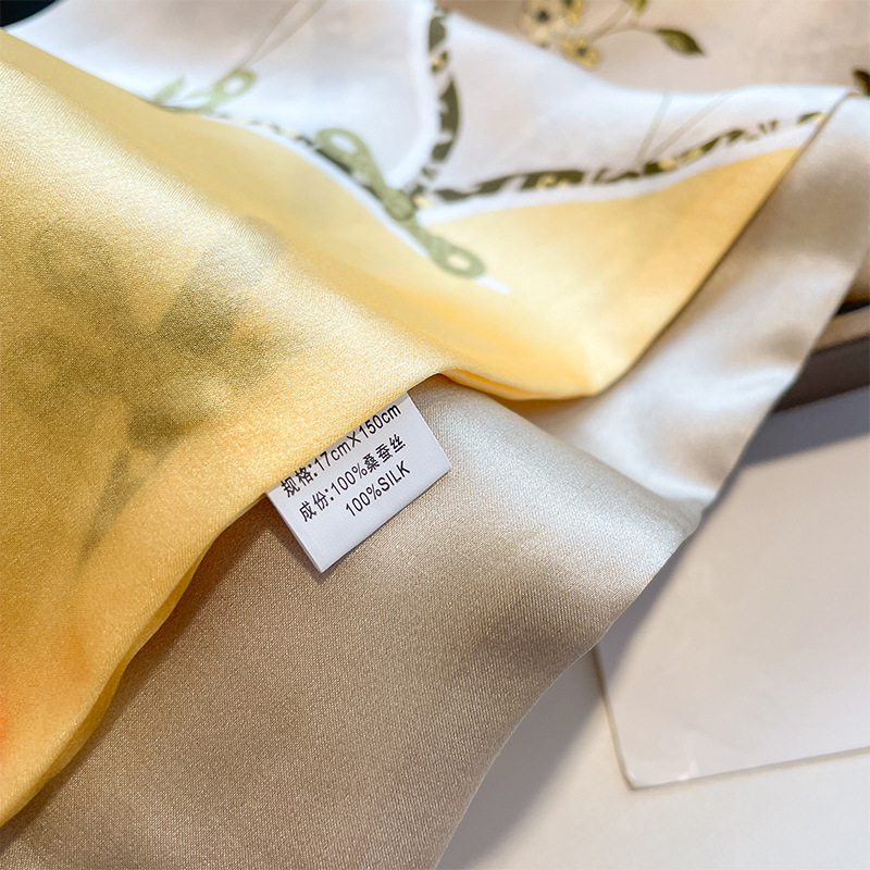 ins风轻奢桑蚕丝领巾文艺淡雅顺滑素绉缎真丝丝巾双层长条飘带