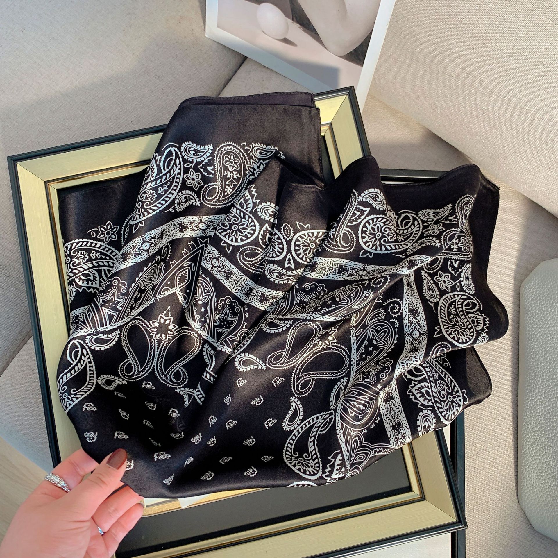 高档丝绸真丝丝巾方巾100%桑蚕丝腰果花围巾春秋百搭时尚领巾