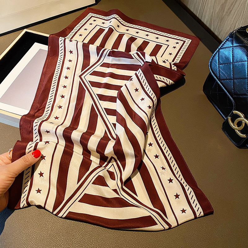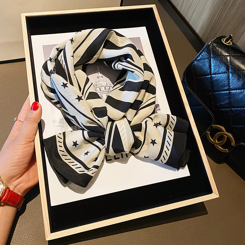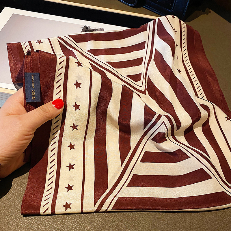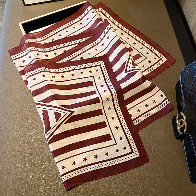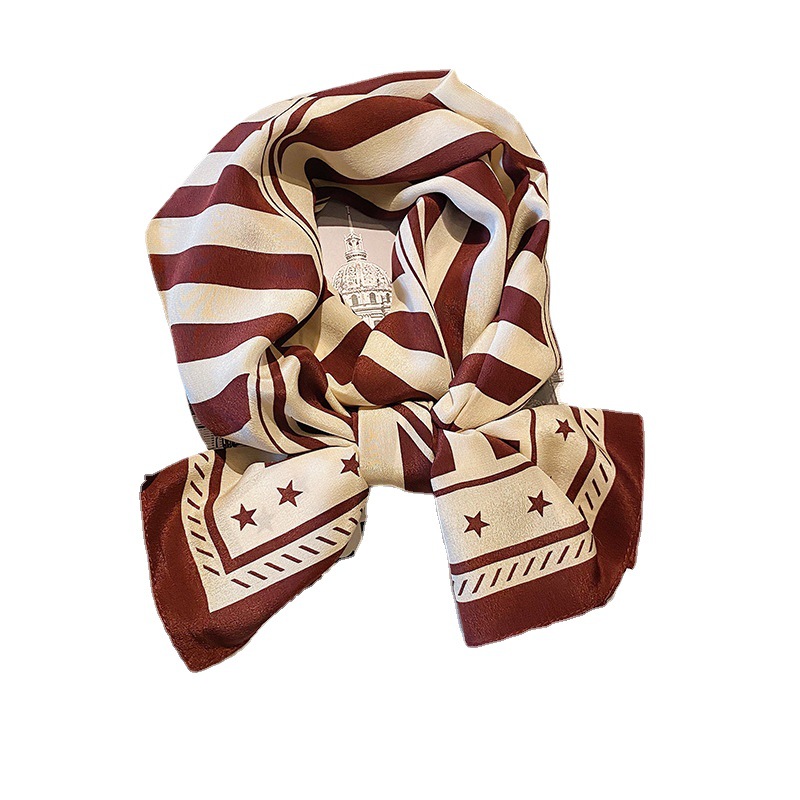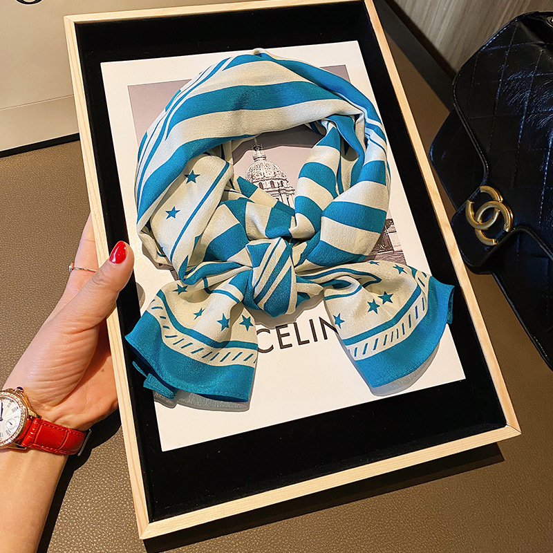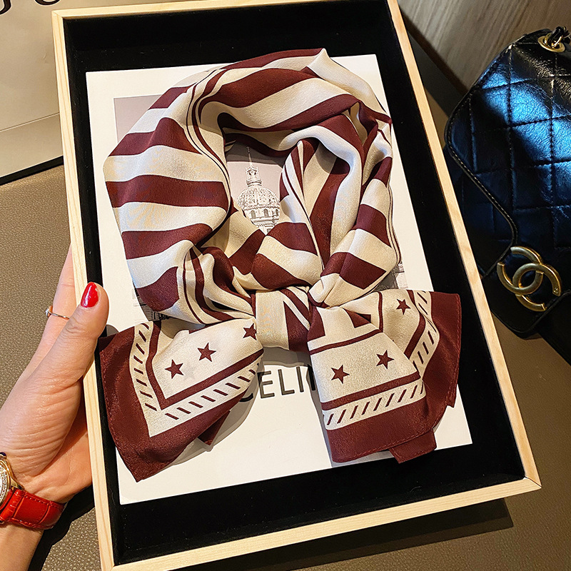 条纹双面真丝丝巾新款100%桑蚕丝长条领巾女百搭时尚装饰小长巾