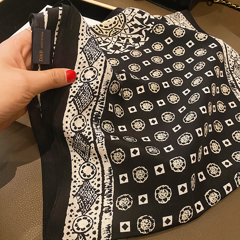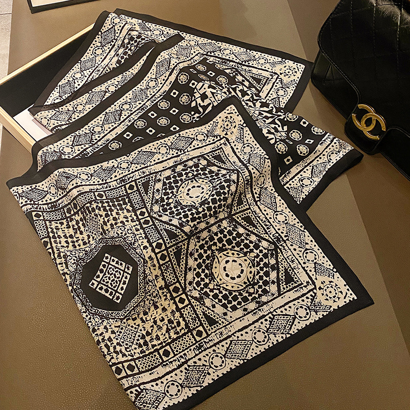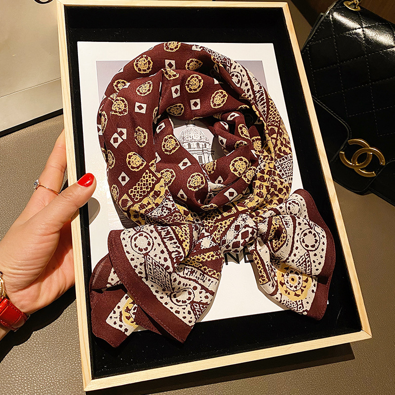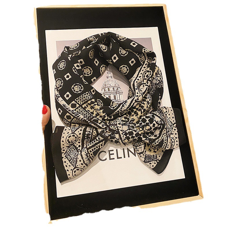 100%桑蚕丝女百搭纯款洋气素绉缎真丝女春季薄款飘带领巾